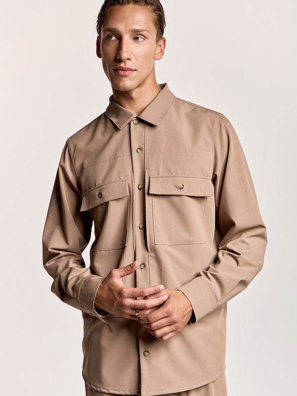 Μπεζ πουκάμισο με μεγάλες τσέπες