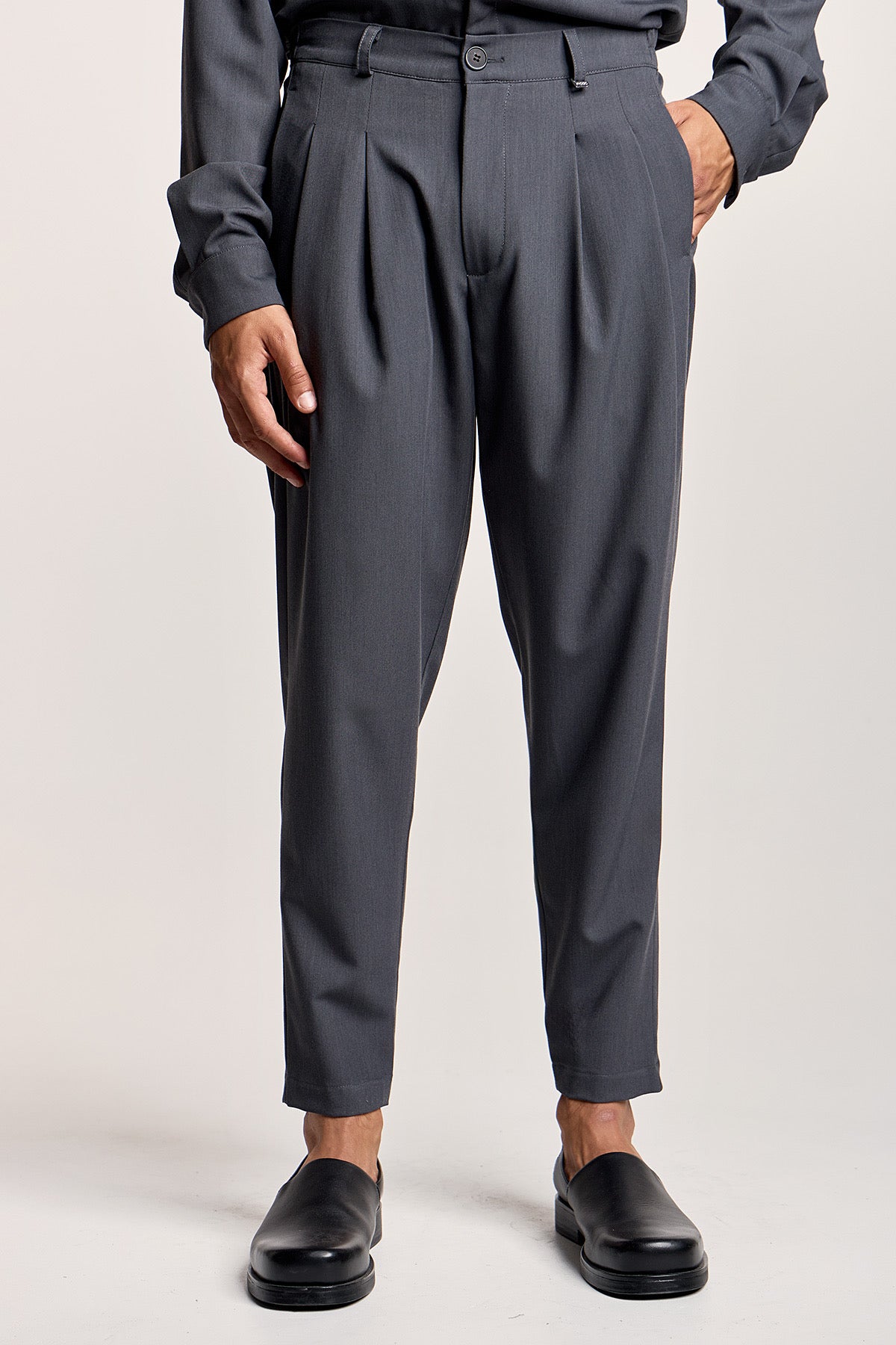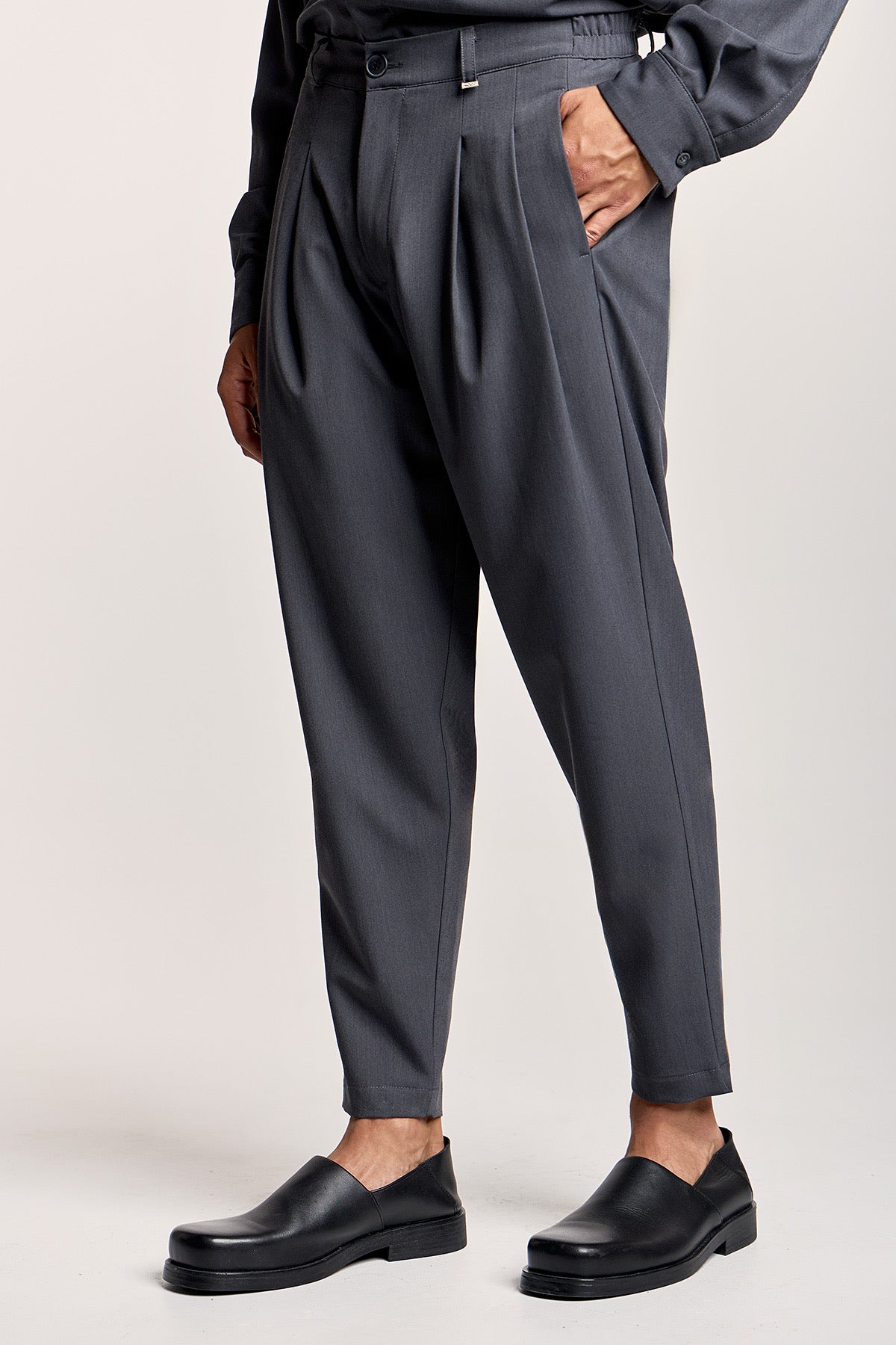 - Γκρι παντελόνι με πιέτες και λάστιχο