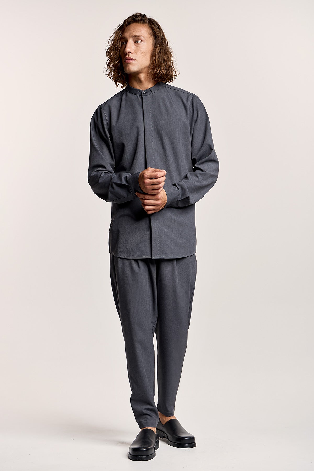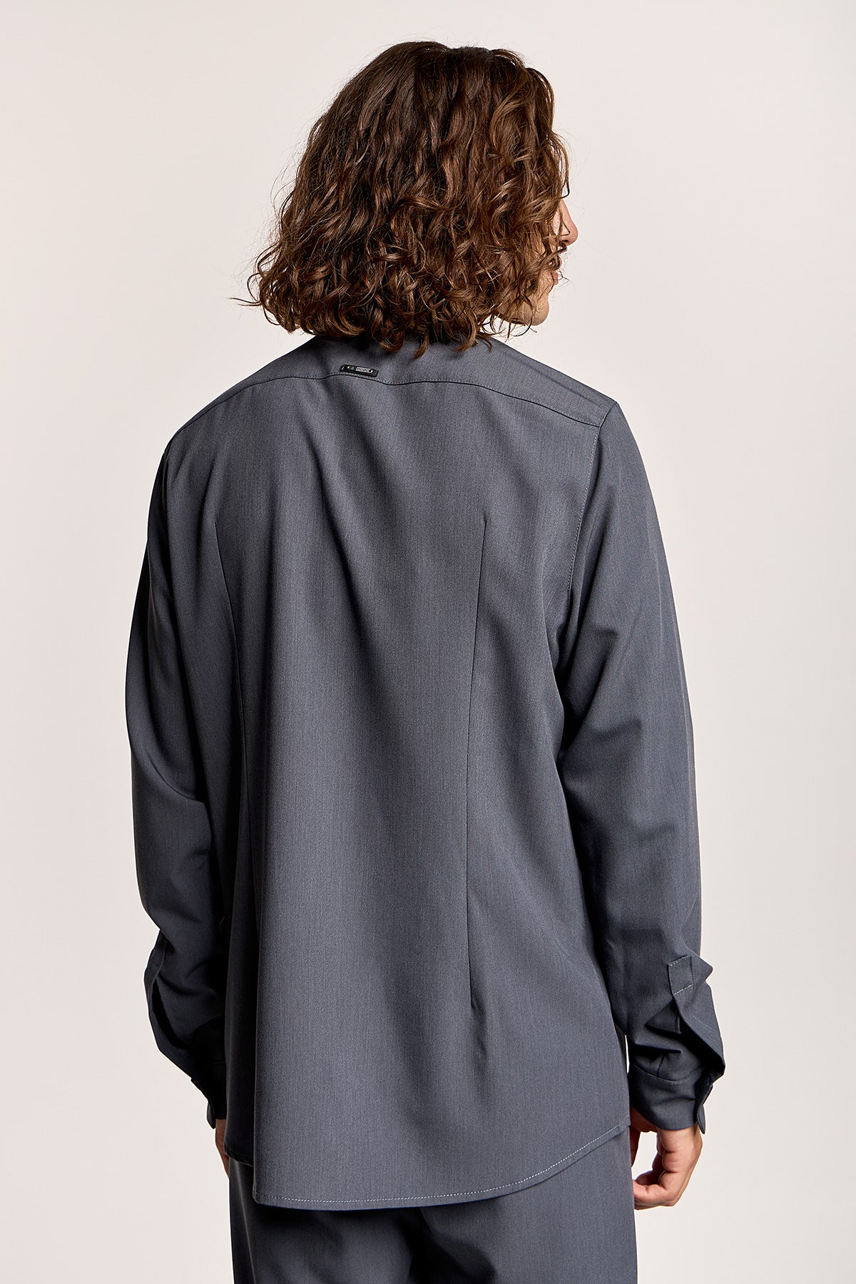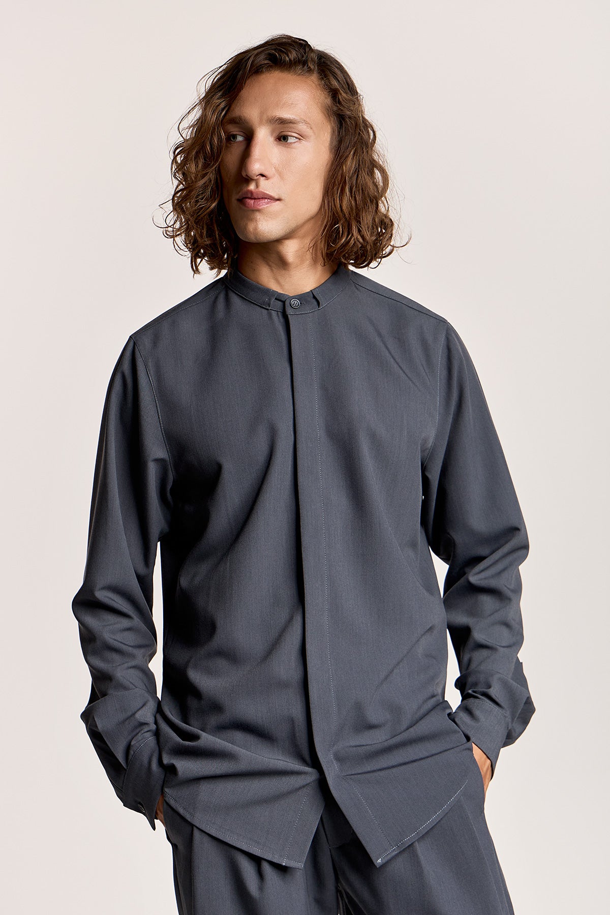 - Γκρί μάο πουκάμισο με κρυφό κουμπί