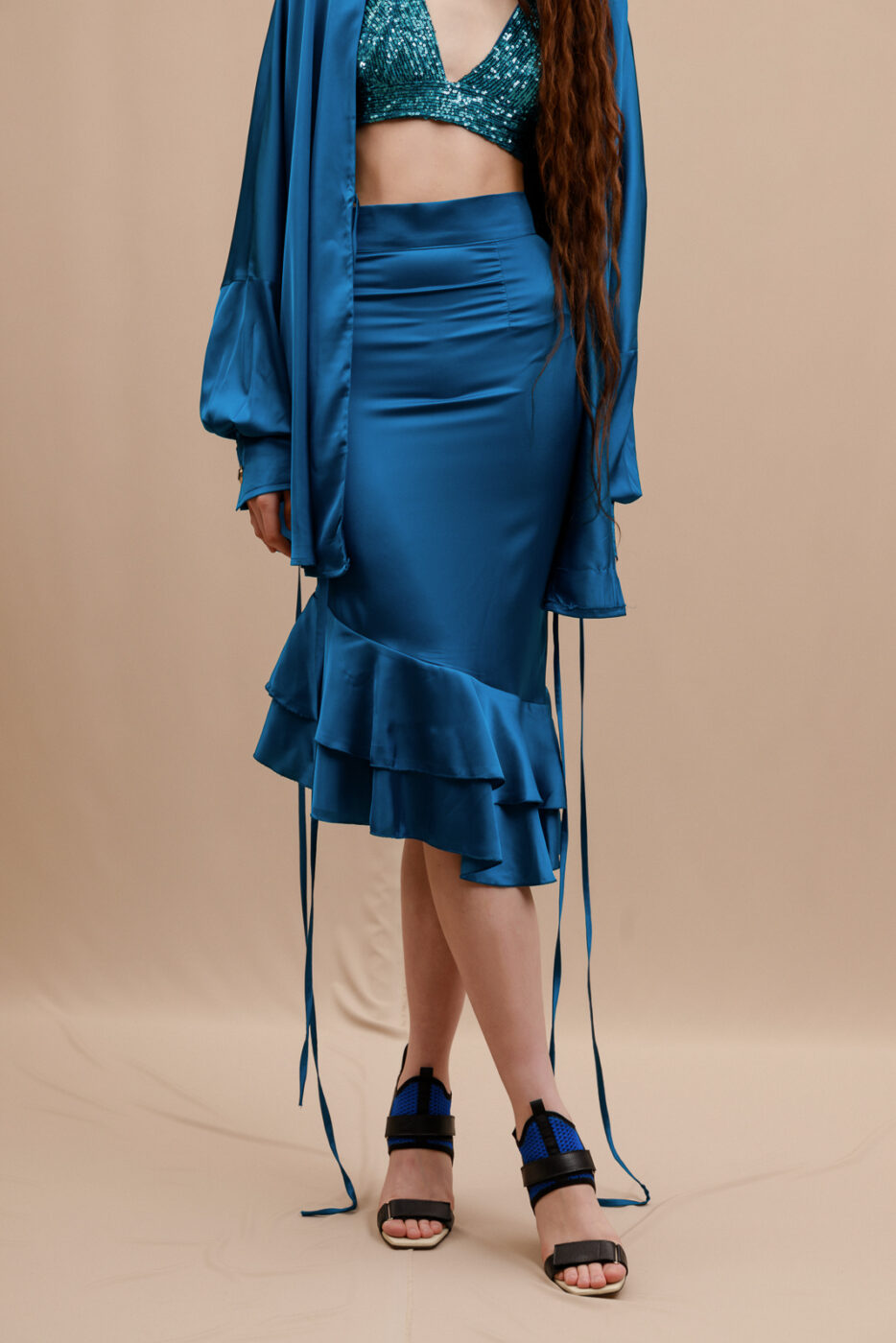 – Midi φούστα με διπλό βολάν στο τελείωμα