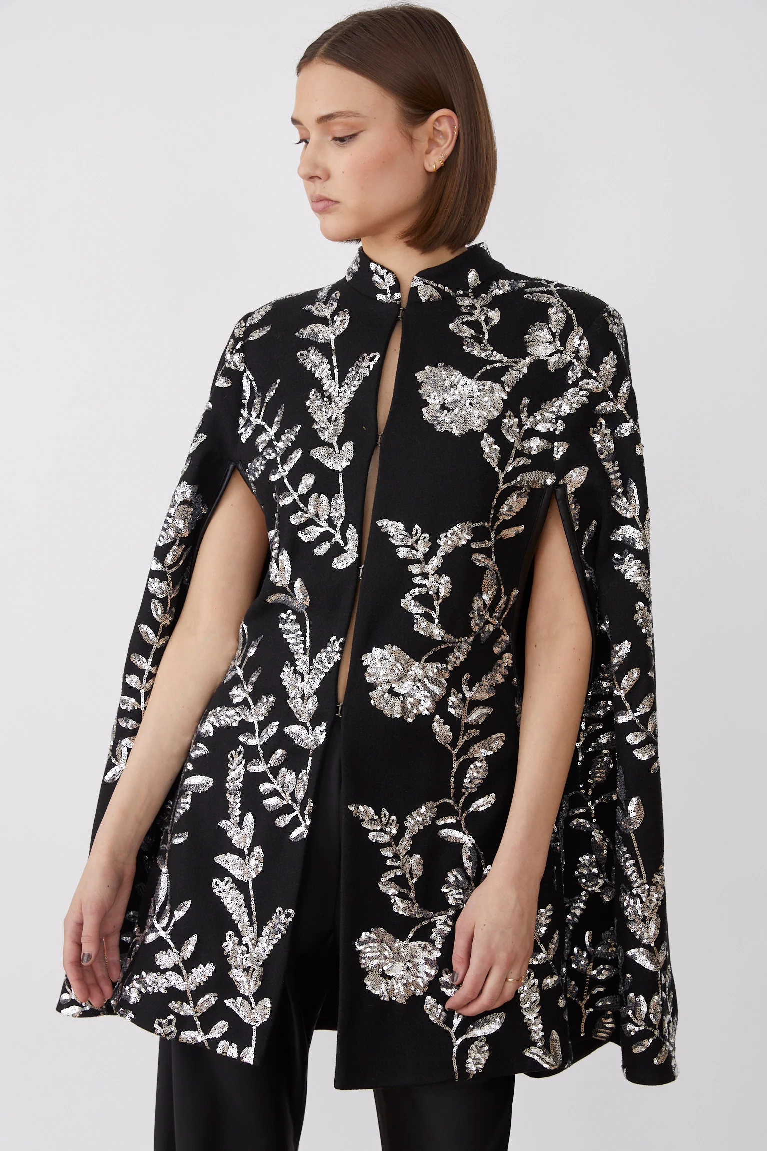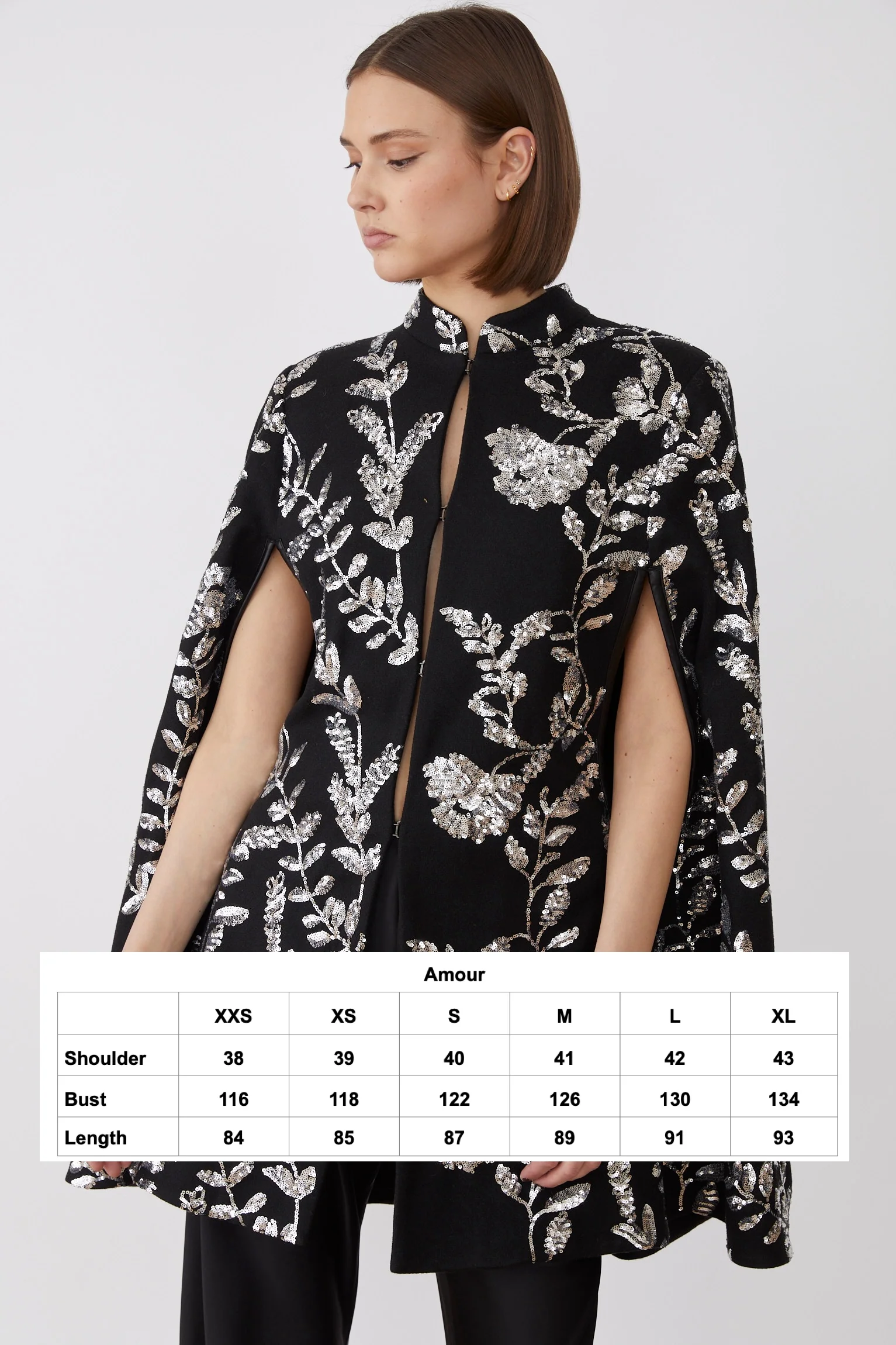 Αναβαθμίστε την εμφάνισή σας με την κάπα Amour, ένα εκλεπτυσμένο κομμάτι με ντελικάτα φλοράλ διακοσμητικά και κομψά ανοίγματα στα μπράτσα. Αυτή η χαριτωμένη κάπα μεταμορφώνει αβίαστα οποιοδήποτε ντύσιμο σε ένα εντυπωσιακό σύνολο, ιδανικό για να προσθέσετε μια εκλεπτυσμένη πινελιά στην γκαρνταρόμπα σας. Είτε φορεθεί σε στρώσεις πάνω από βραδινά ρούχα είτε σε κομψά καθημερινά ρούχα, ενσαρκώνει τη διαχρονική κομψότητα και χρησιμεύει ως το τέλειο κομμάτι για ξεχωριστές περιστάσεις.