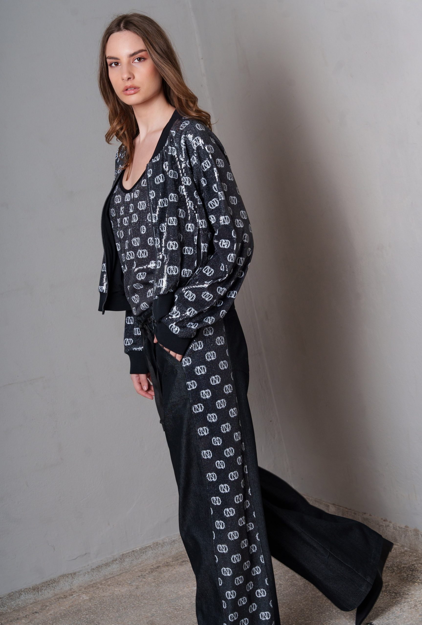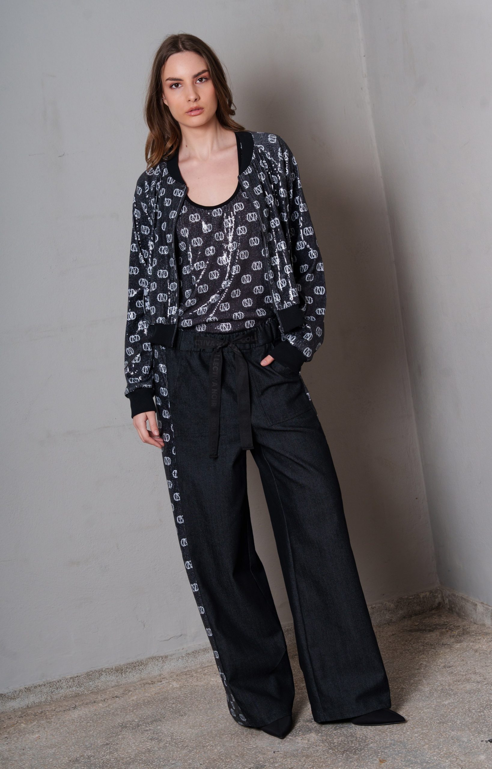 - Denim παντελόνα με φάσα από παγιέτα CN