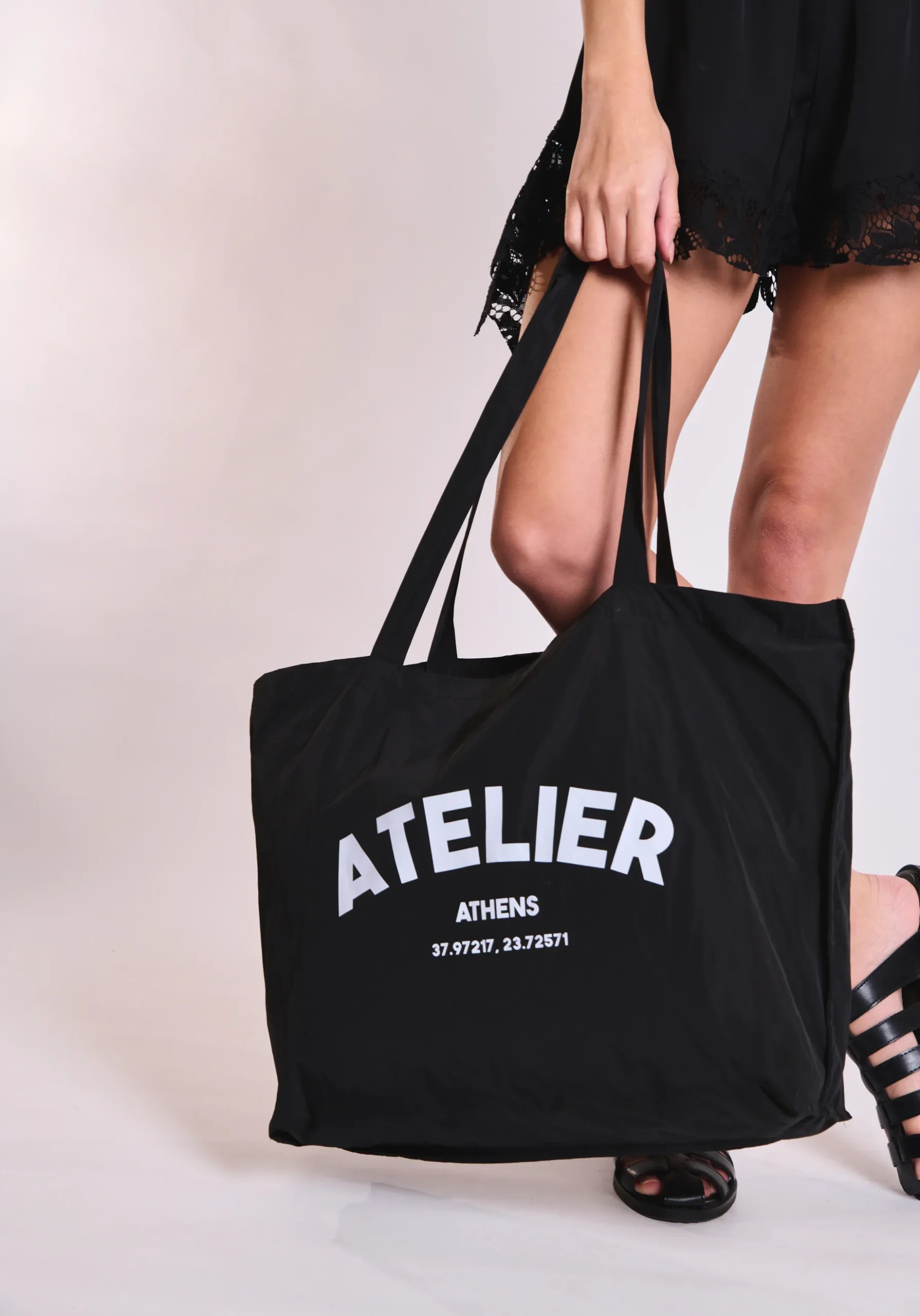 - Εκτυπωμένο λογότυπο ATELIER και λεπτομέρεια συντεταγμένων στο μπροστινό μέρος