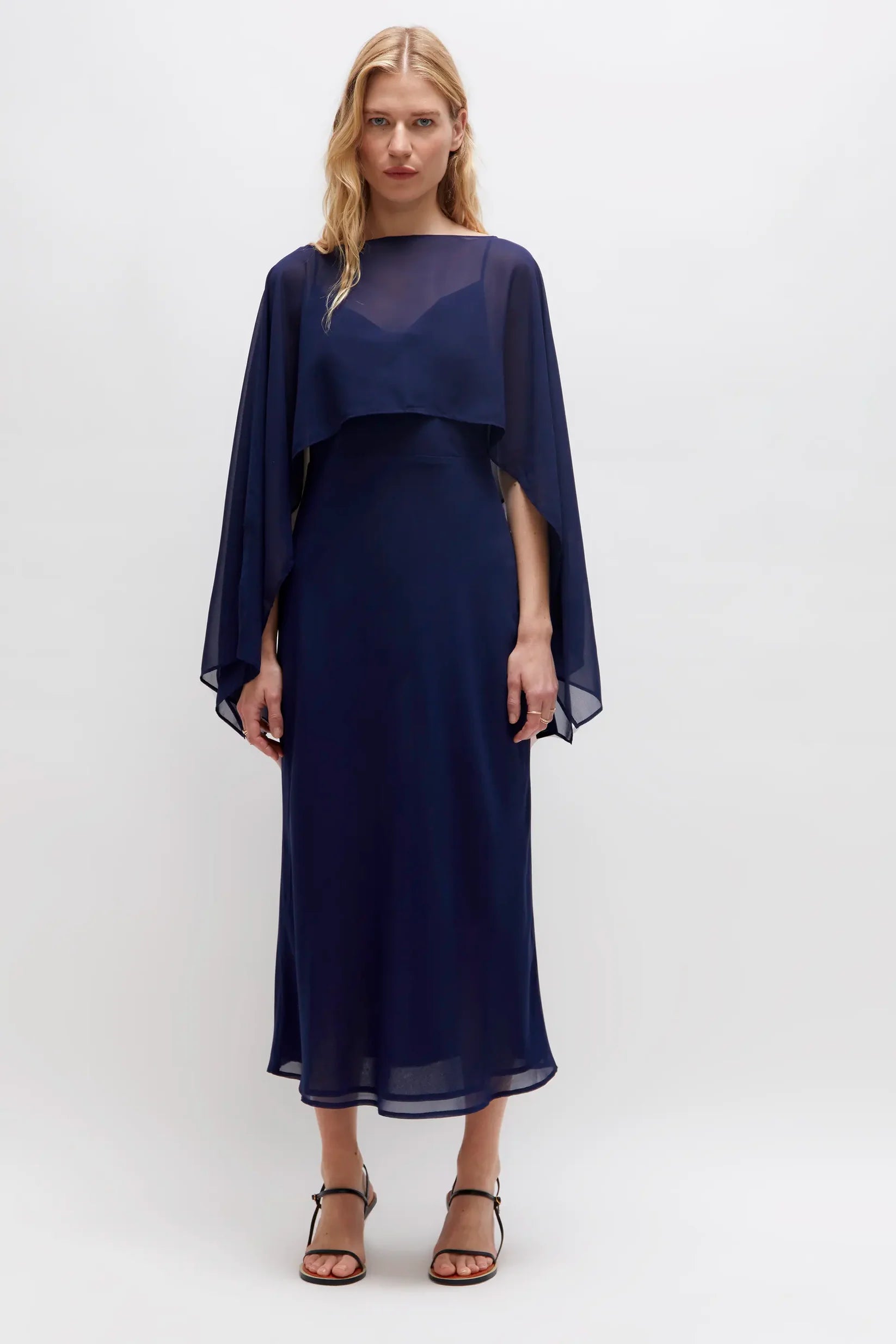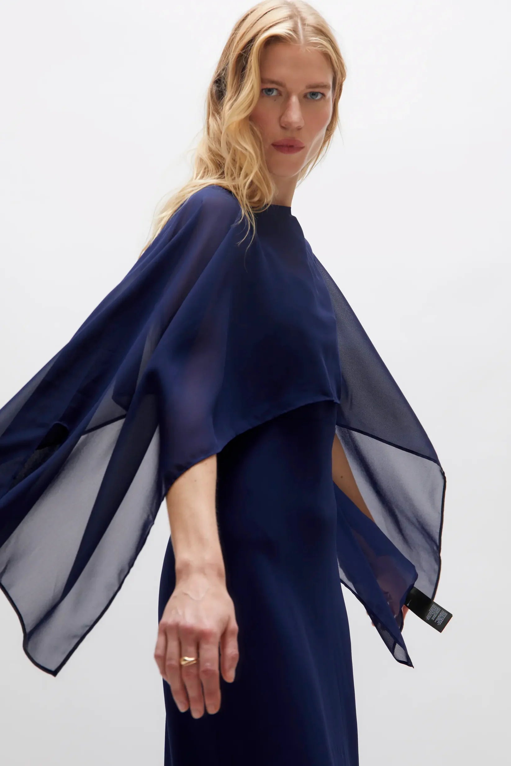 – Κάπα σε μπλε ναυτικό κρεπ ύφασμα georgette