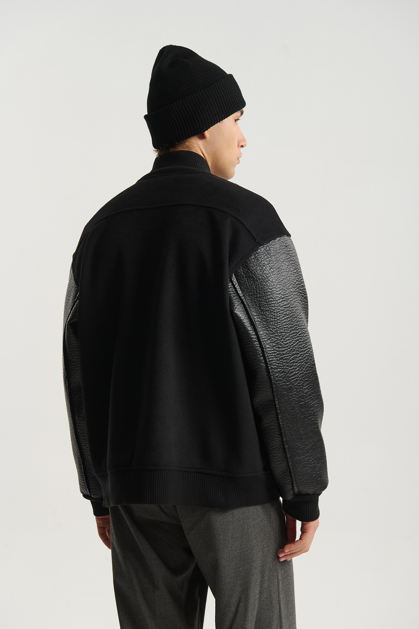 Ανδρικό bomber jacket σε μοντέρνα, minimal γραμμή, ιδανικό για καθημερινές αλλά και πιο προσεγμένες εμφανίσεις. Κατασκευασμένο από ποιοτικό ύφασμα με αντίθεση στα μανίκια, προσφέρει στύλ και άνεση όλη μέρα.
