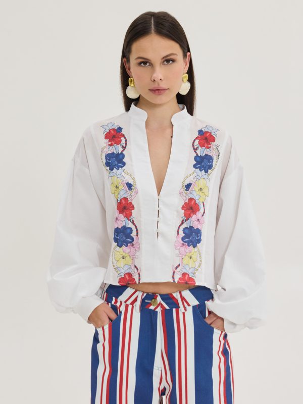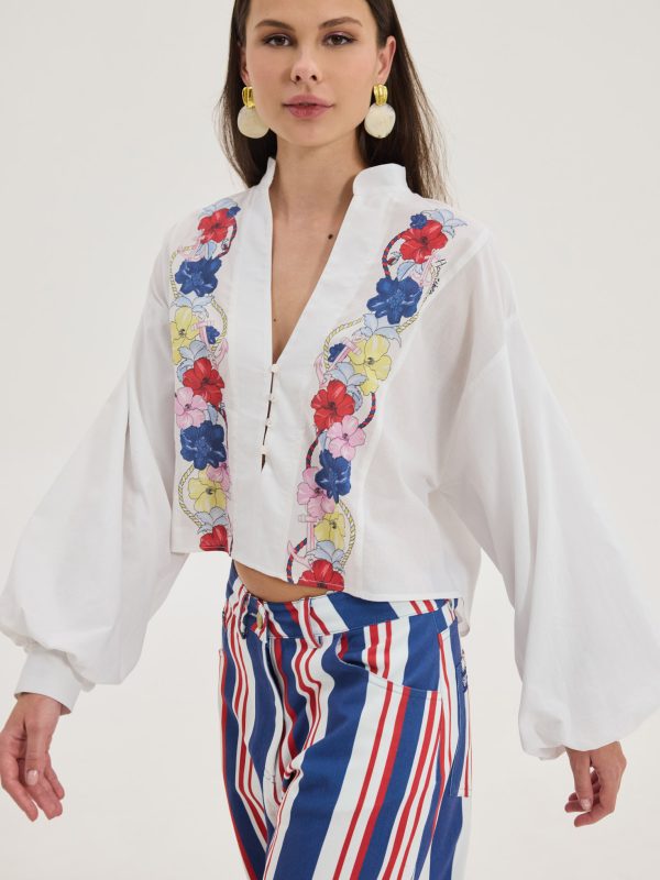 Crop top με μπούστο και Pattern summer flowers σε sunset orange. Φορεσέ το με το Martha Pants (Orange)-Hemithea