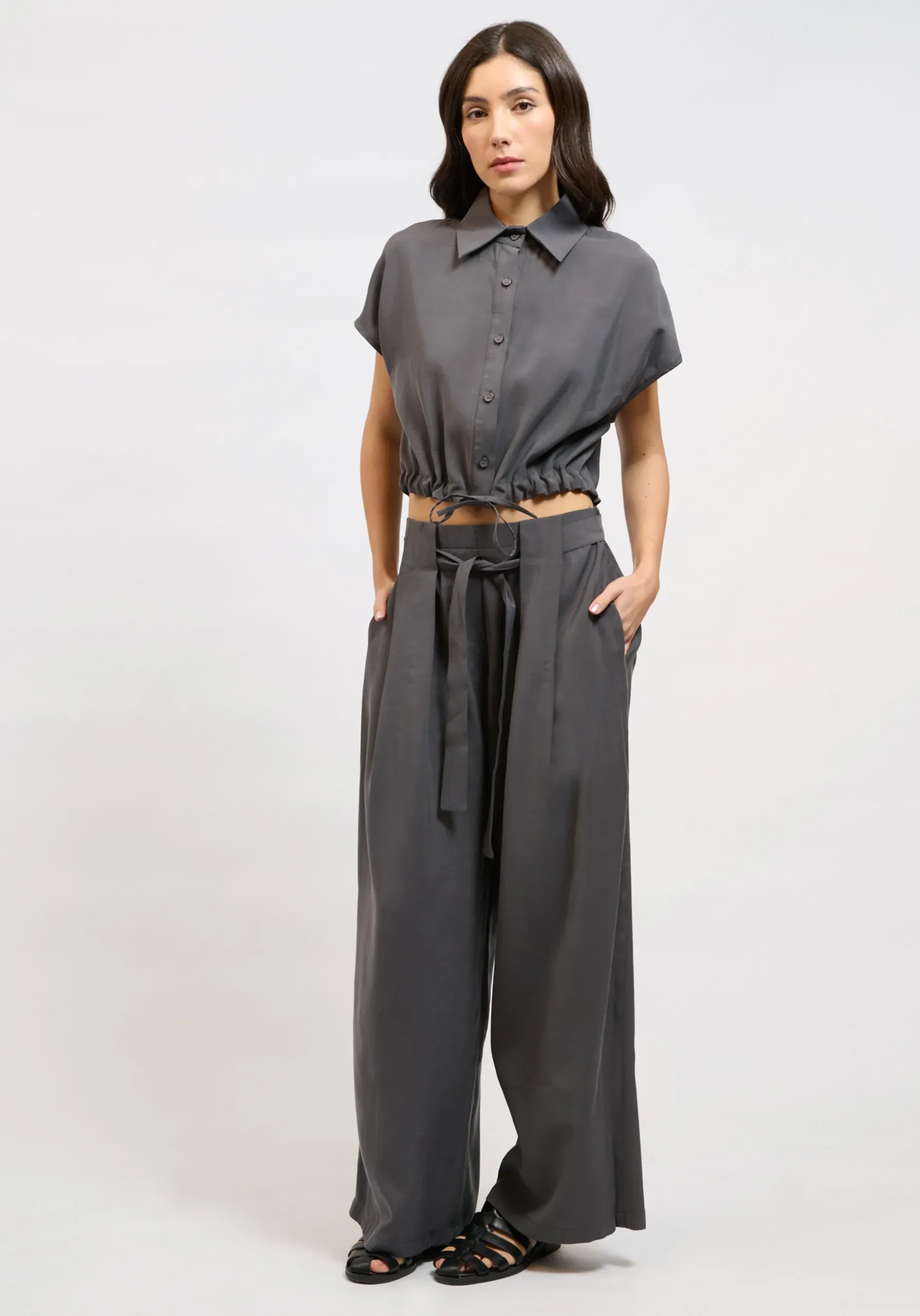 Wide leg παντελόνι με σύγχρονη γραμμή, που συνδυάζει minimal αισθητική με δυναμικό χαρακτήρα για statement και effortless καθημερινά looks.