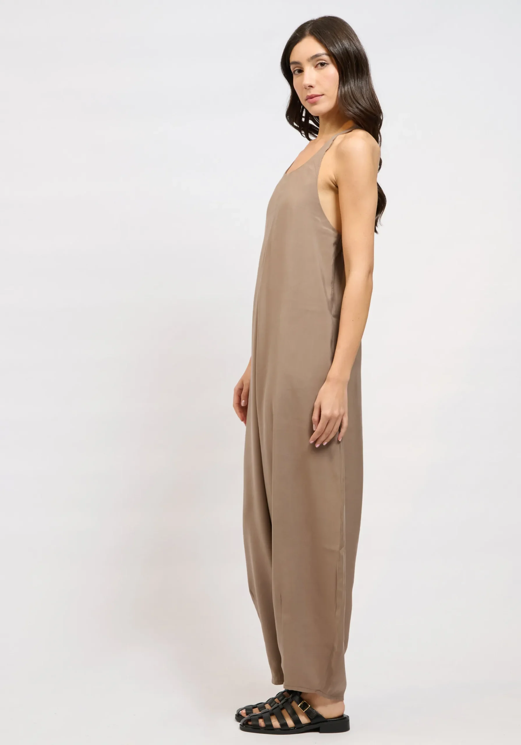 Jumpsuit με ρευστή γραμμή, που συνδυάζει minimal αισθητική με σύγχρονη κομψότητα για effortless και ολοκληρωμένα καθημερινά looks.