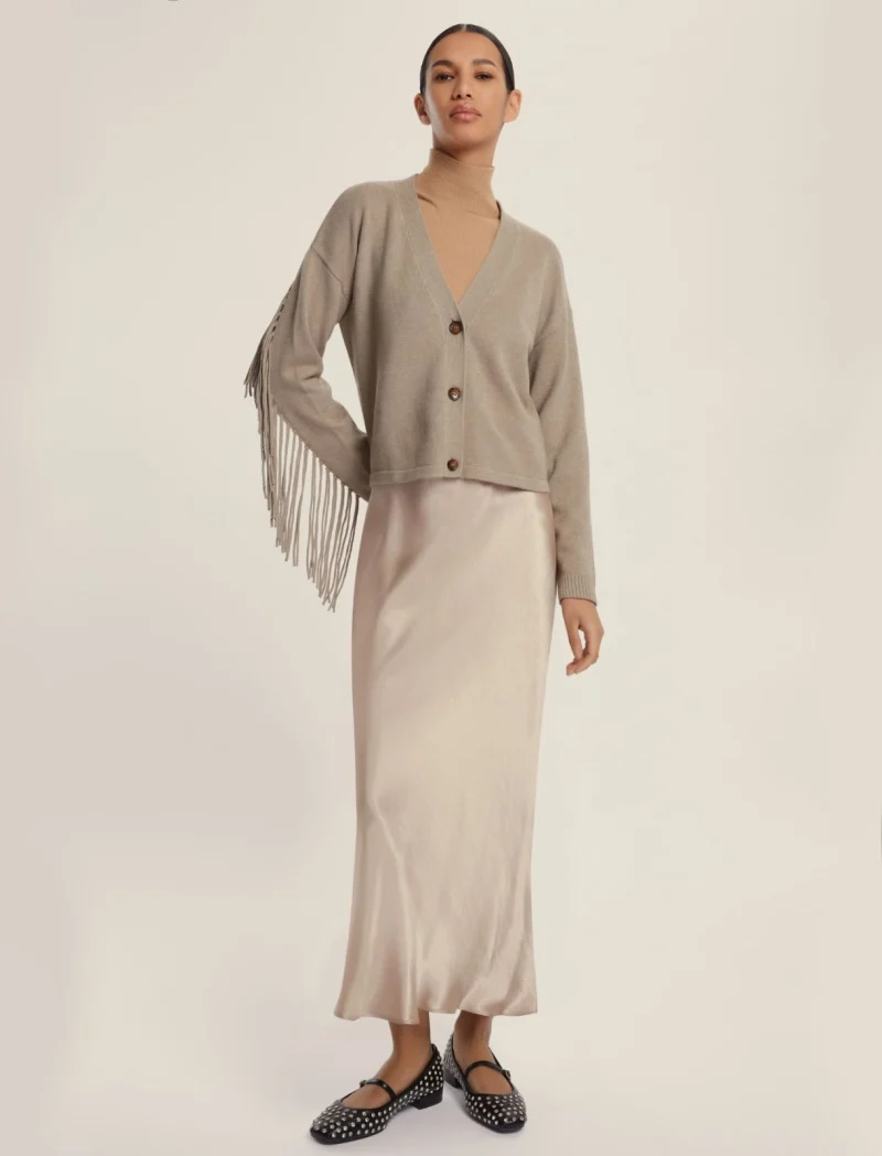 EBE OVERSIZED FRINGED CARDIGAN – TURTLEDOVE