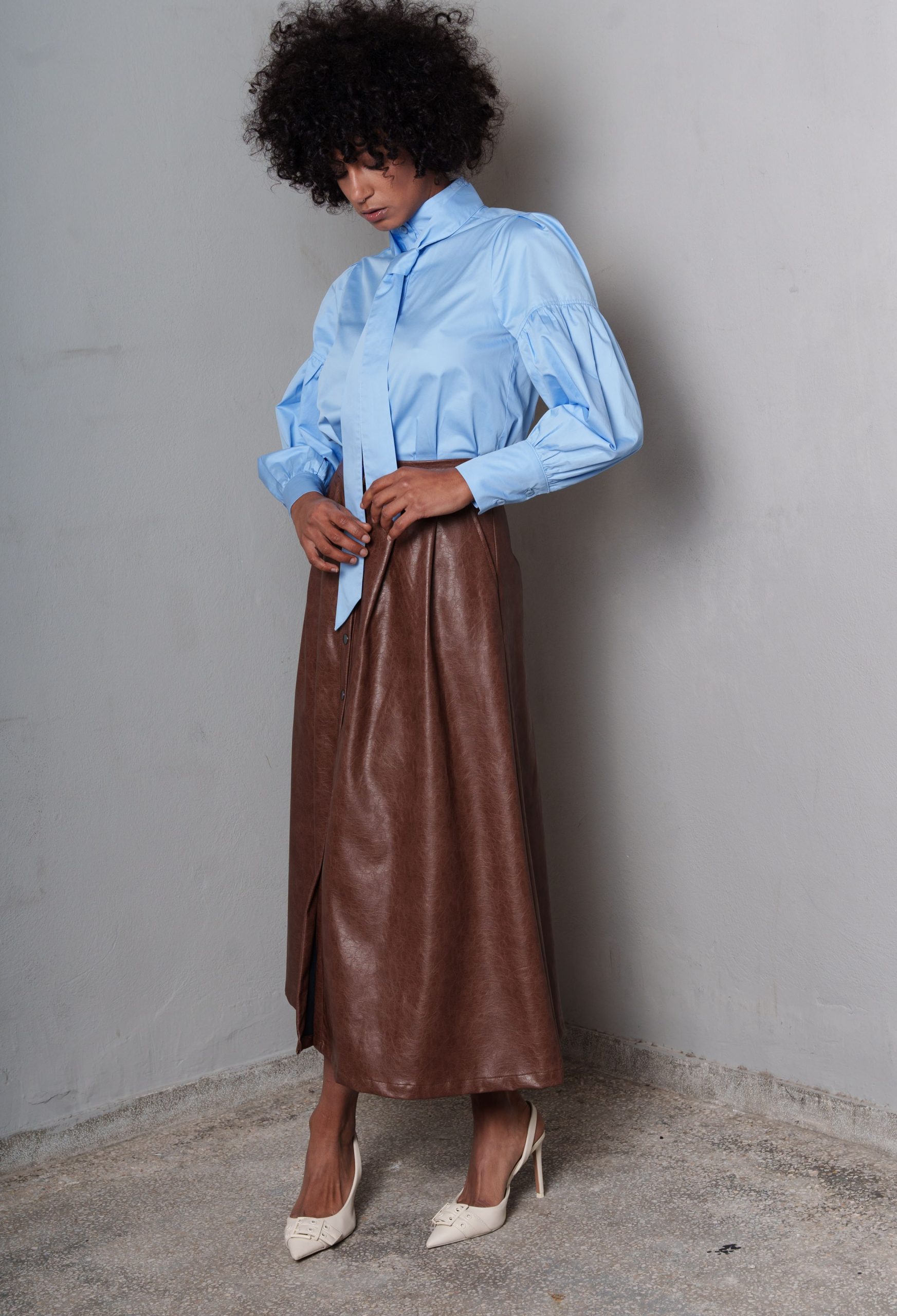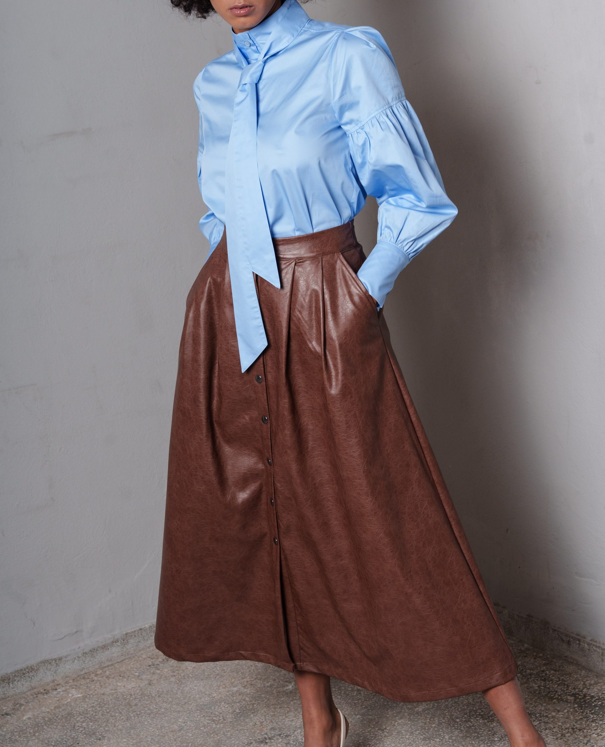 - Εβαζέ φούστα με τρουκς από οικολογική δερματίνη