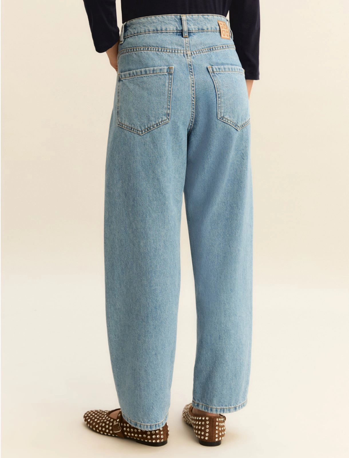 Denim παντελόνι mom fit, κλείνει με φερμουάρ και κουμπί. Συνδυάσε το με το EMMTECA DENIM BLAZER