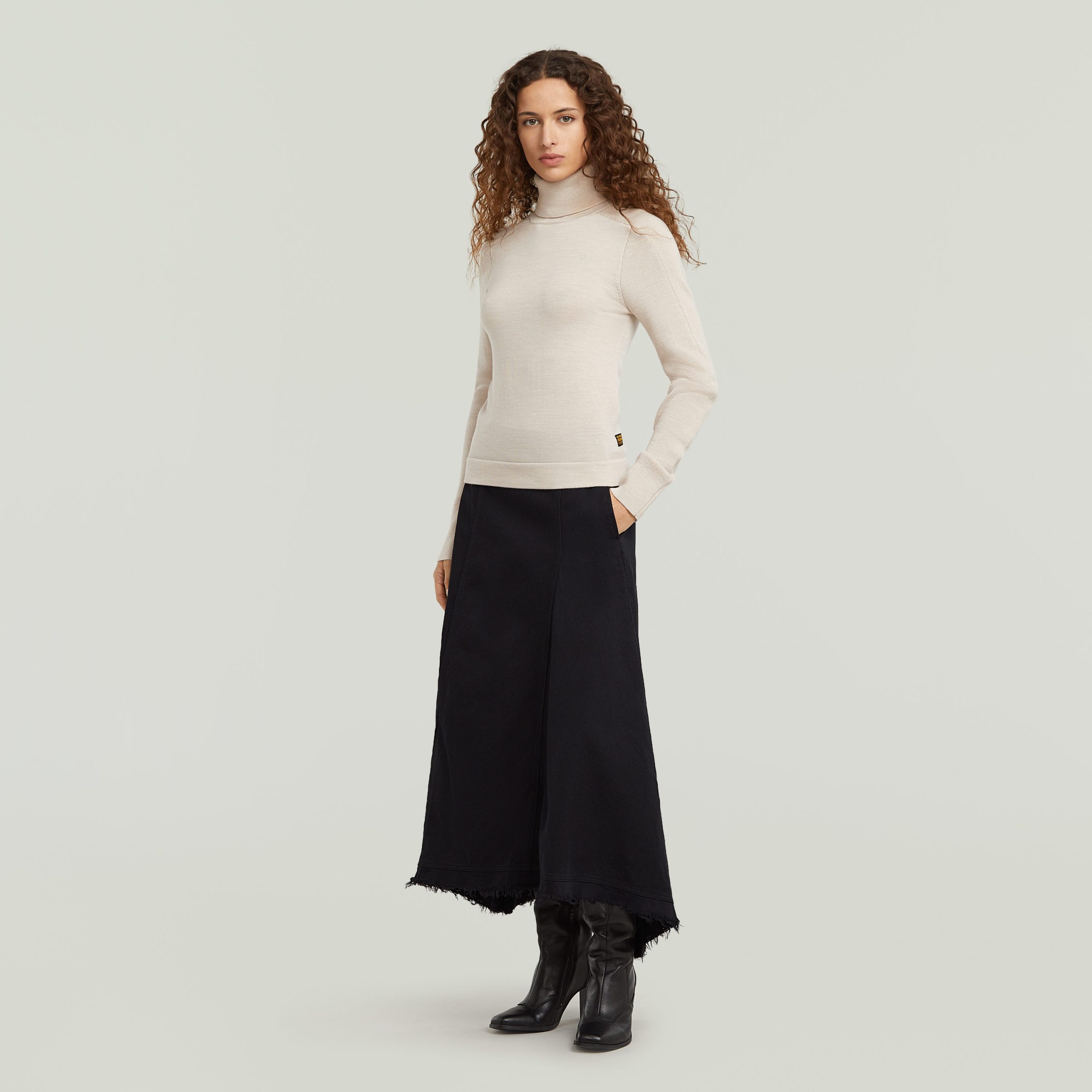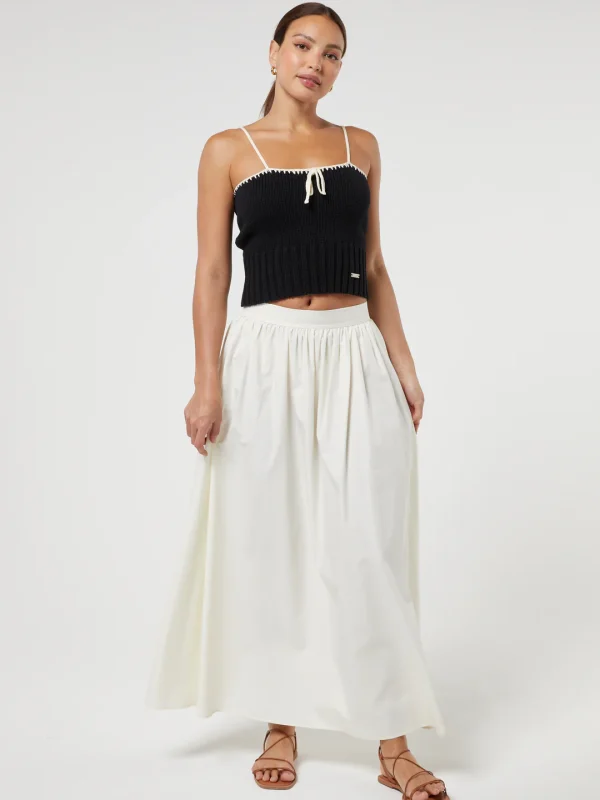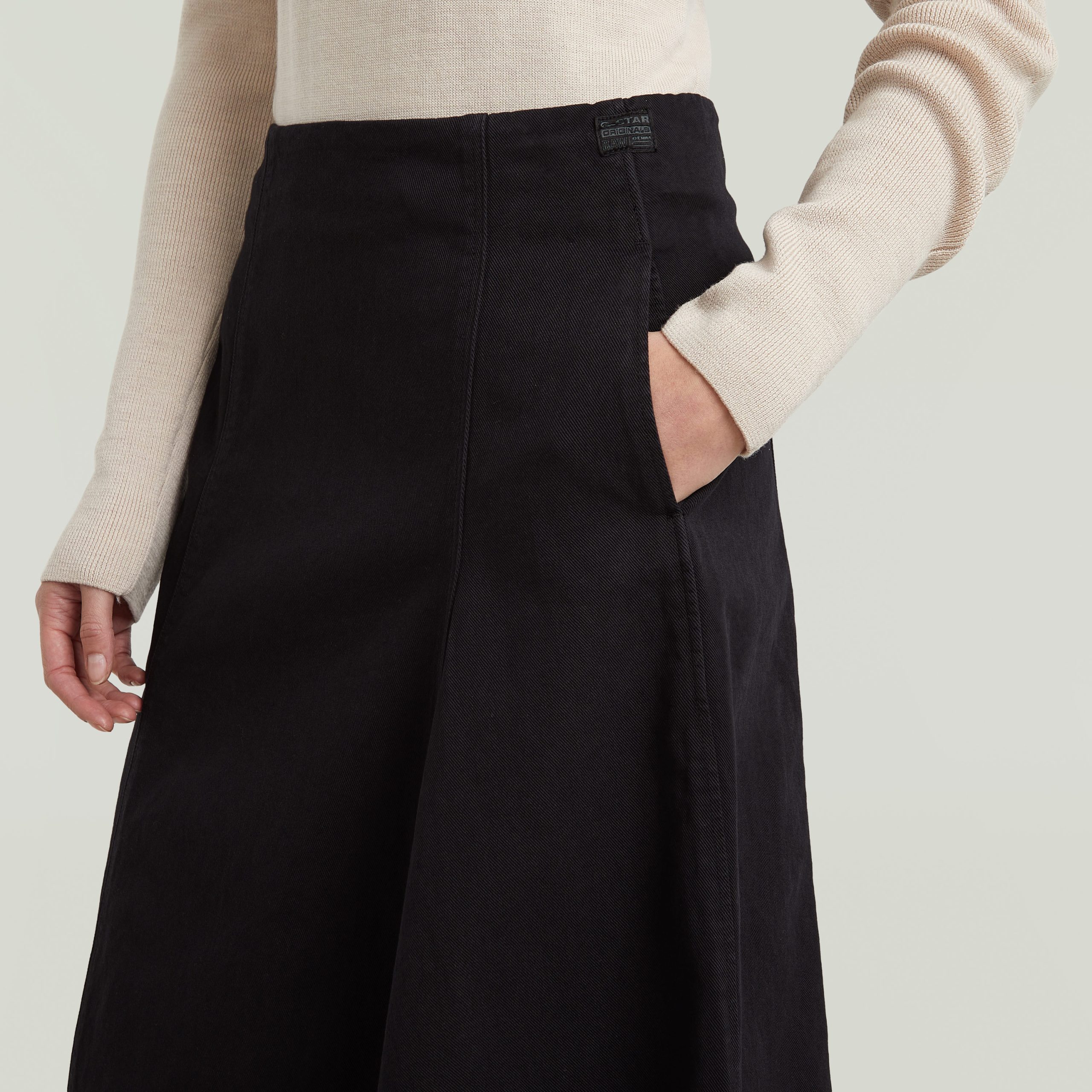 Η φούστα Flare διαθέτει ψηλόμεσο σχέδιο σε γραμμή Α, προσφέροντας μια κολακευτική σιλουέτα μεσαίου μήκους. Το κλείσιμο με φερμουάρ εξασφαλίζει σταθερή εφαρμογή, ενώ το δομημένο ύφασμα προσθέτει μια πινελιά κομψότητας.