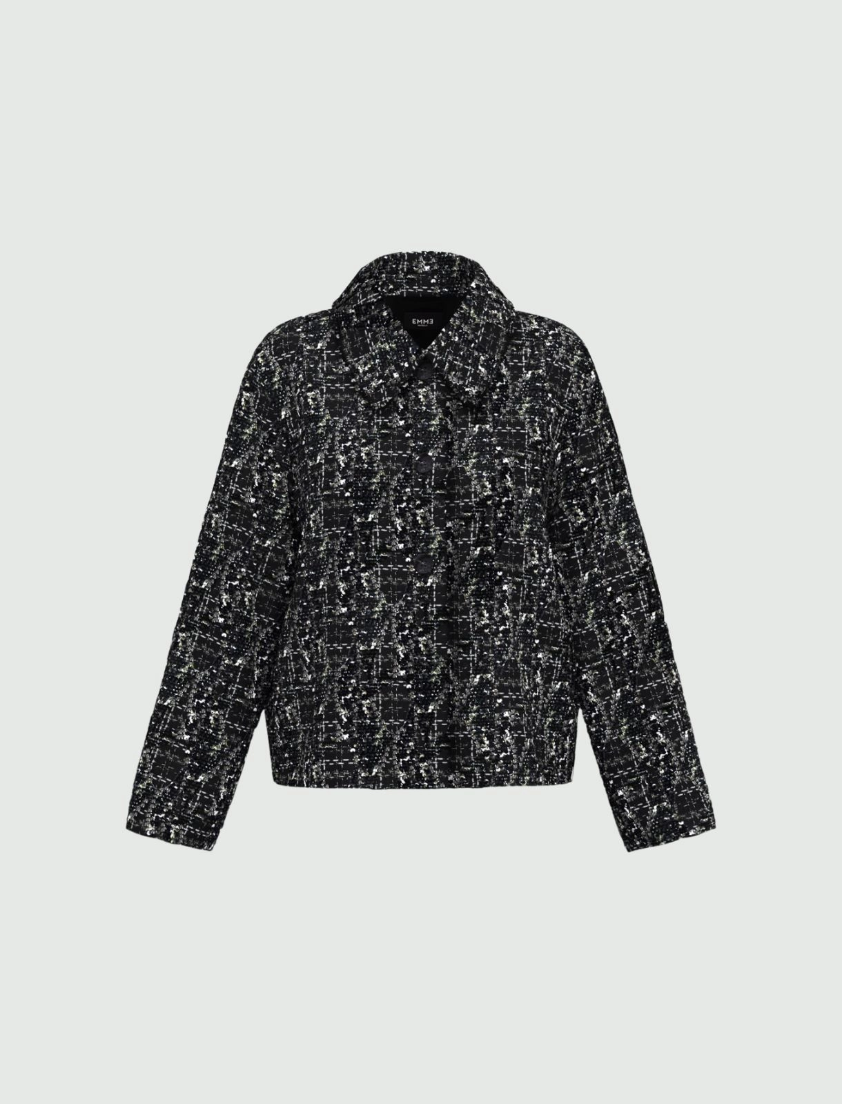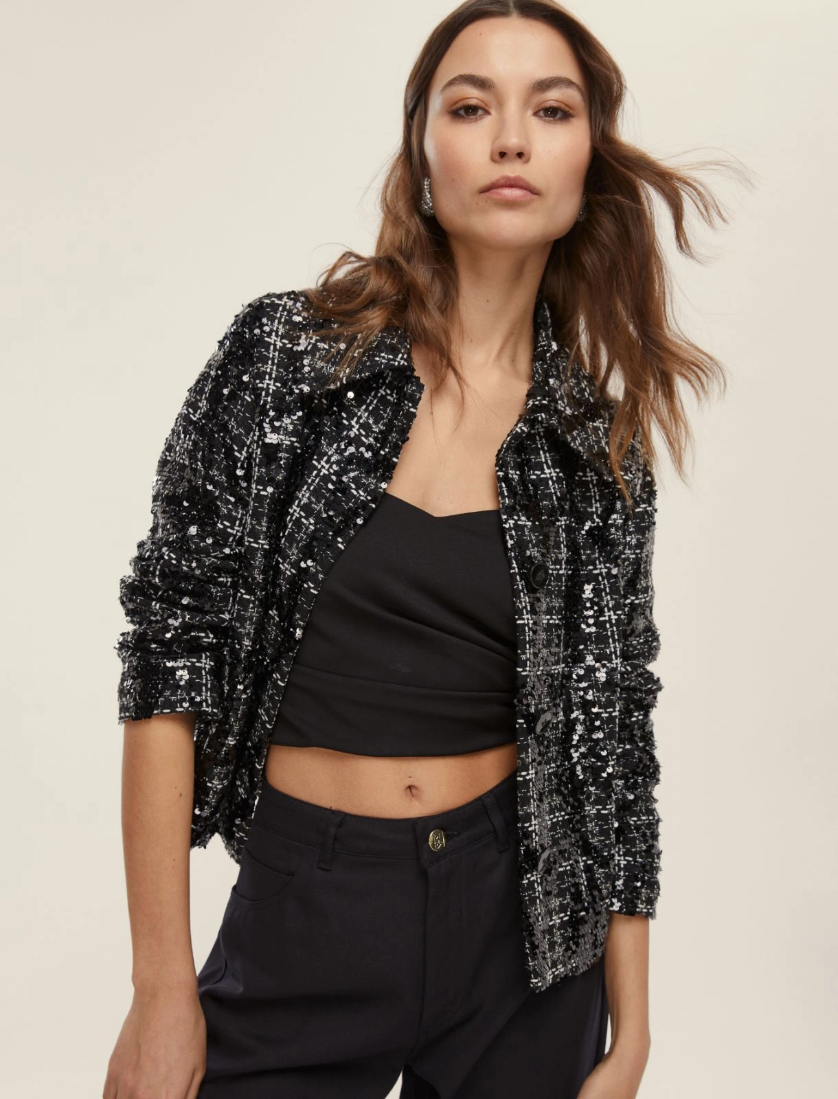 Ένας αστικός άνεμος φυσάει στην πόλη, παίζοντας με τη λάμψη των πούλιων και το γυναικείο κόψιμο ενός σακακιού από καλαθοπλεκτική ύφανση. Το νήμα lurex στο υφάδι αιχμαλωτίζει κάθε ακτίνα φωτός για να σας αφήσει να λάμψετε.