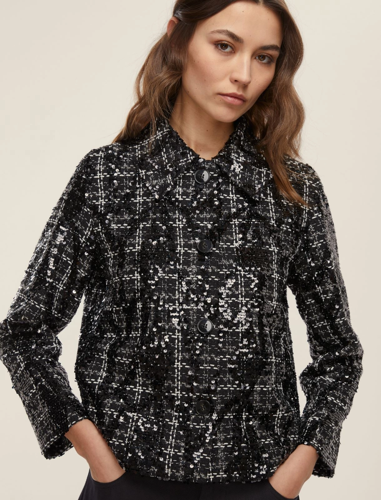 FRANK SEQUIN-ADORNED BASKETWAVE JACKET-BLACK