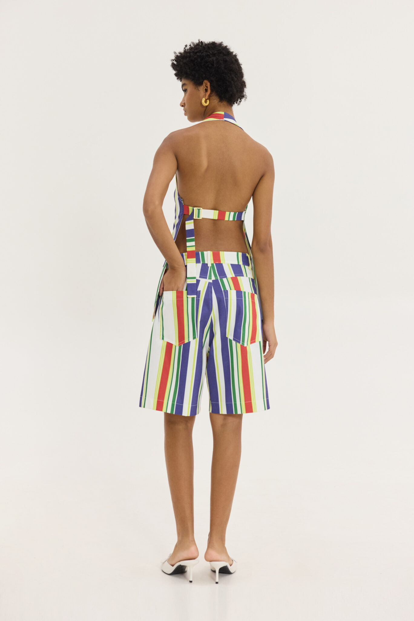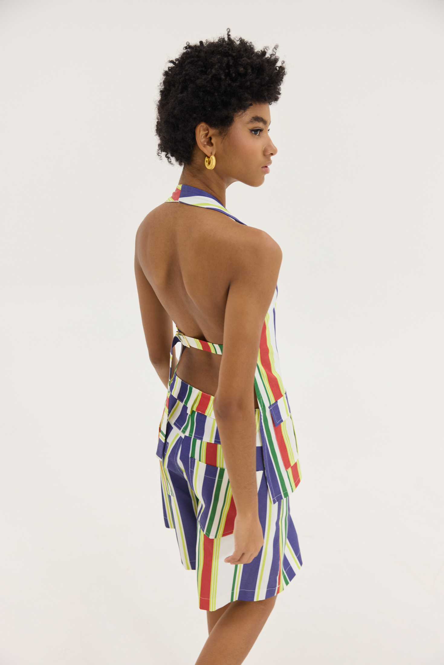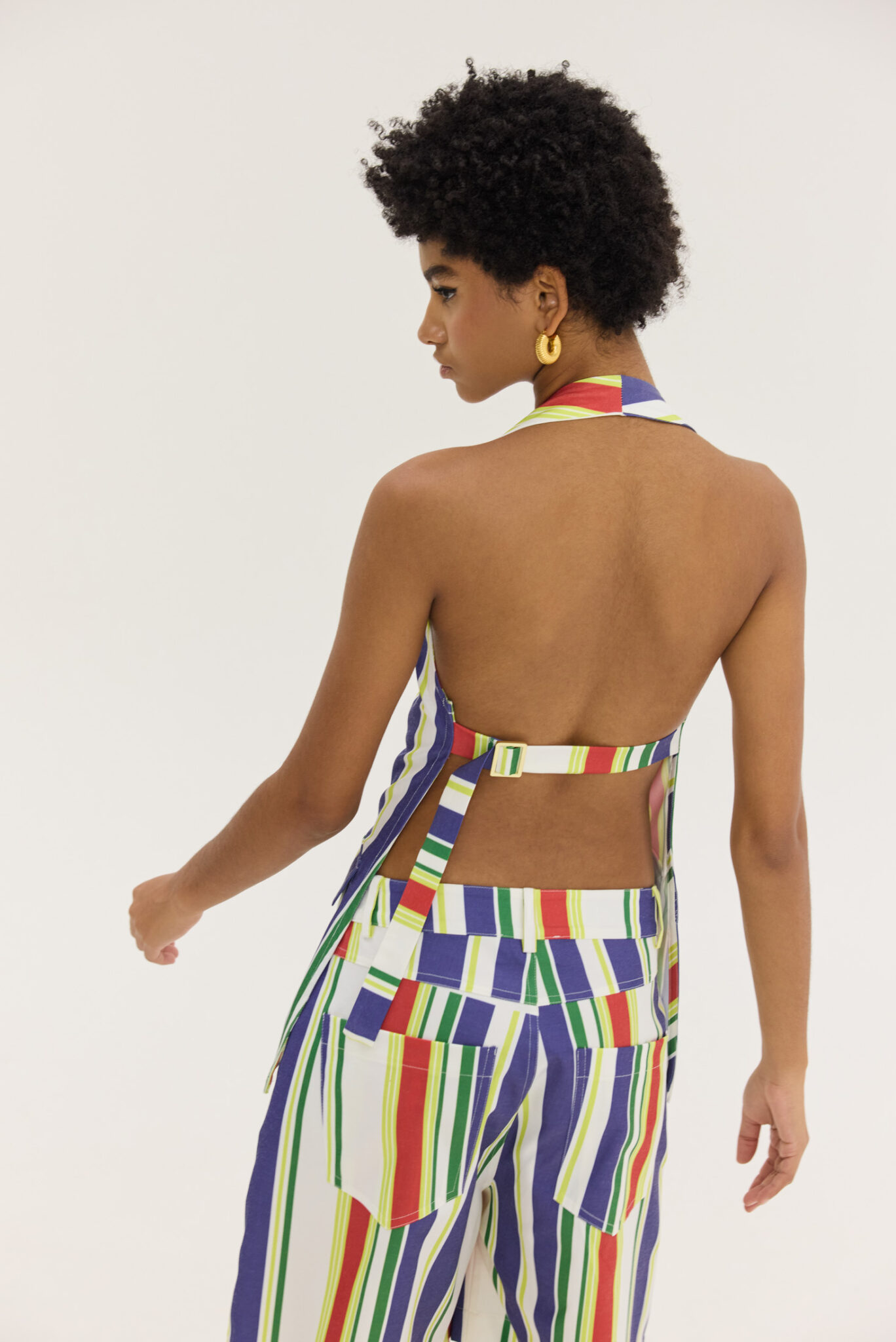 Top με ανοιχτή πλάτη, halter και v-neck σε Pattern retro ριγέ, με μπλε, κόκκινο και lime. το με το Hemithea-Ava pants (Stripes)
