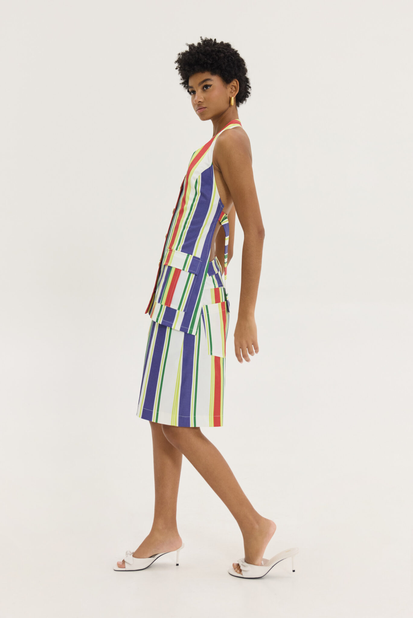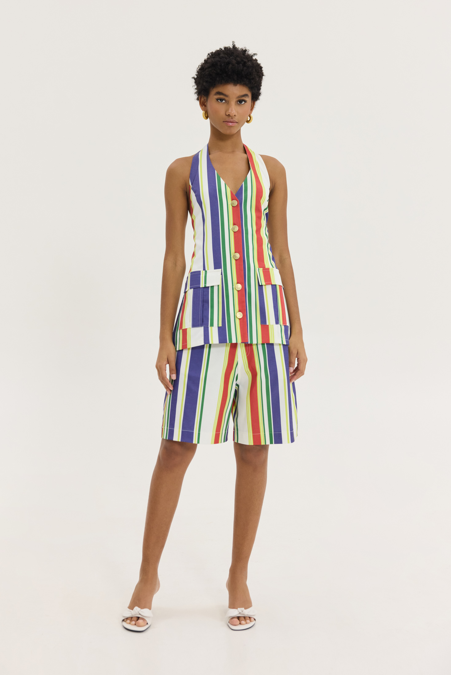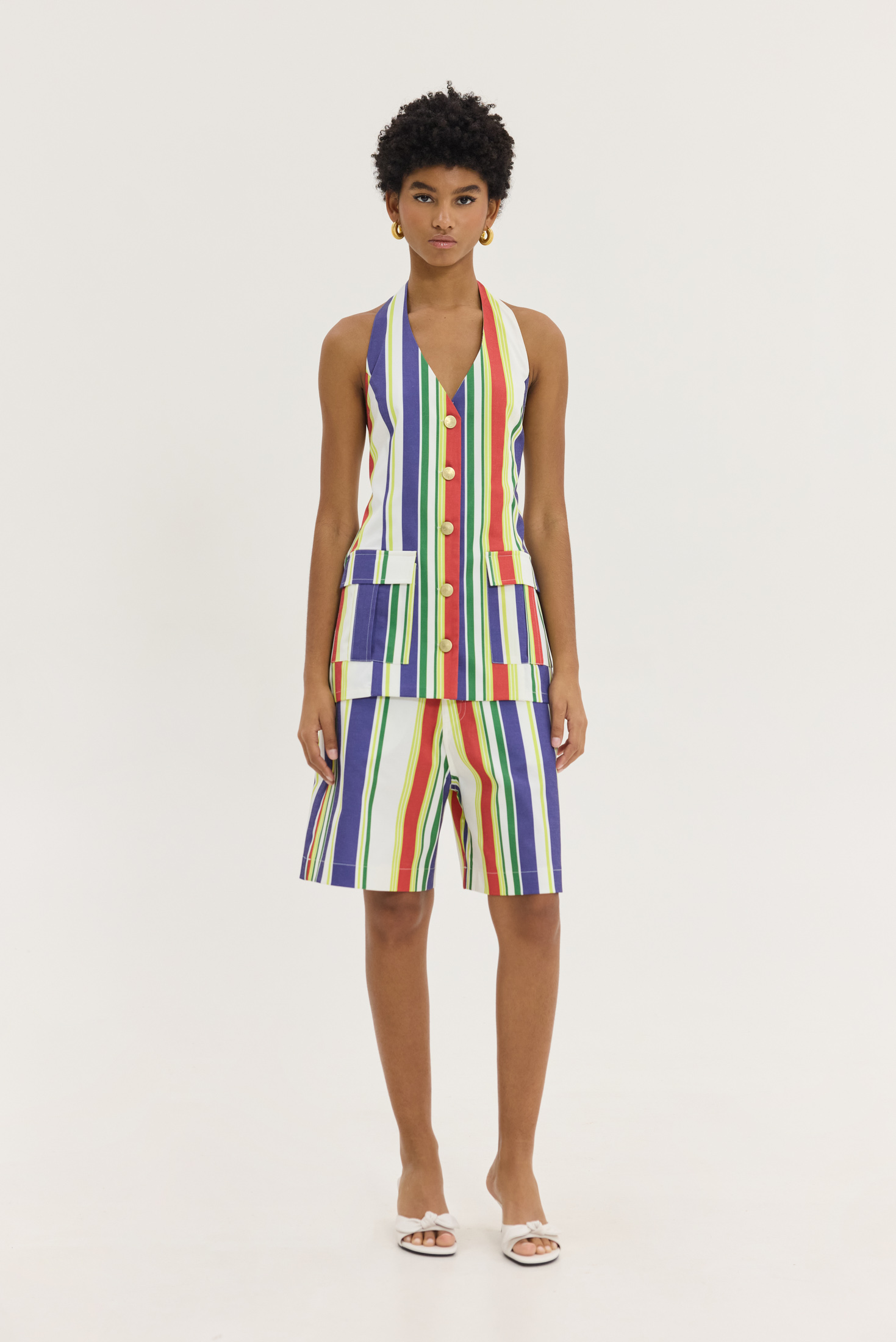 Top με ανοιχτή πλάτη, halter και v-neck σε Pattern retro ριγέ, με μπλε, κόκκινο και lime. το με το Hemithea-Ava pants (Stripes)