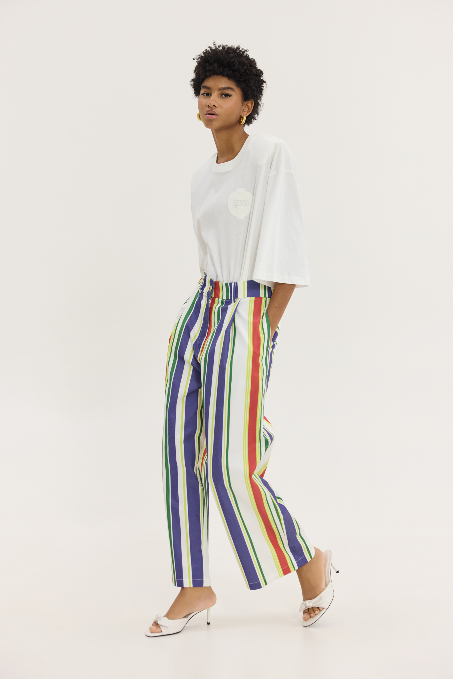 Ψηλόμεσο παντελόνι με oversized fit που κλείνει προς τα κάτω. Συνδυάσε το με το Hemithea-Asterix top stripes