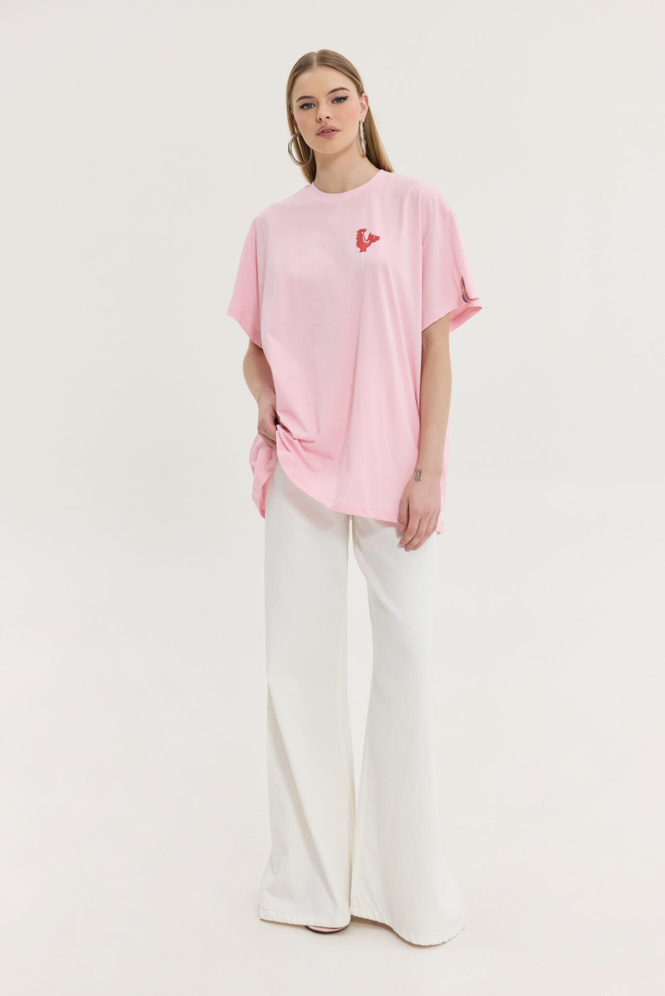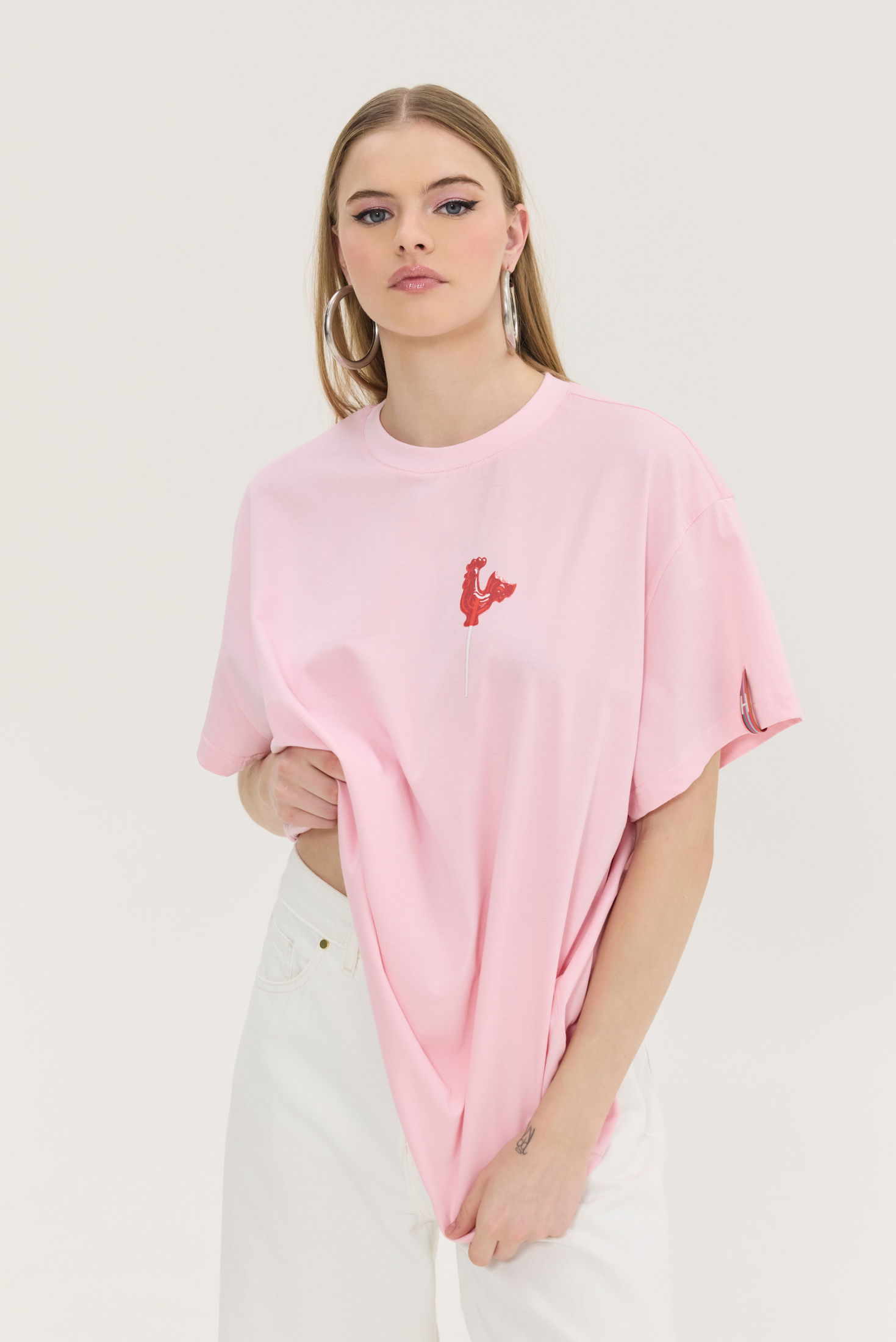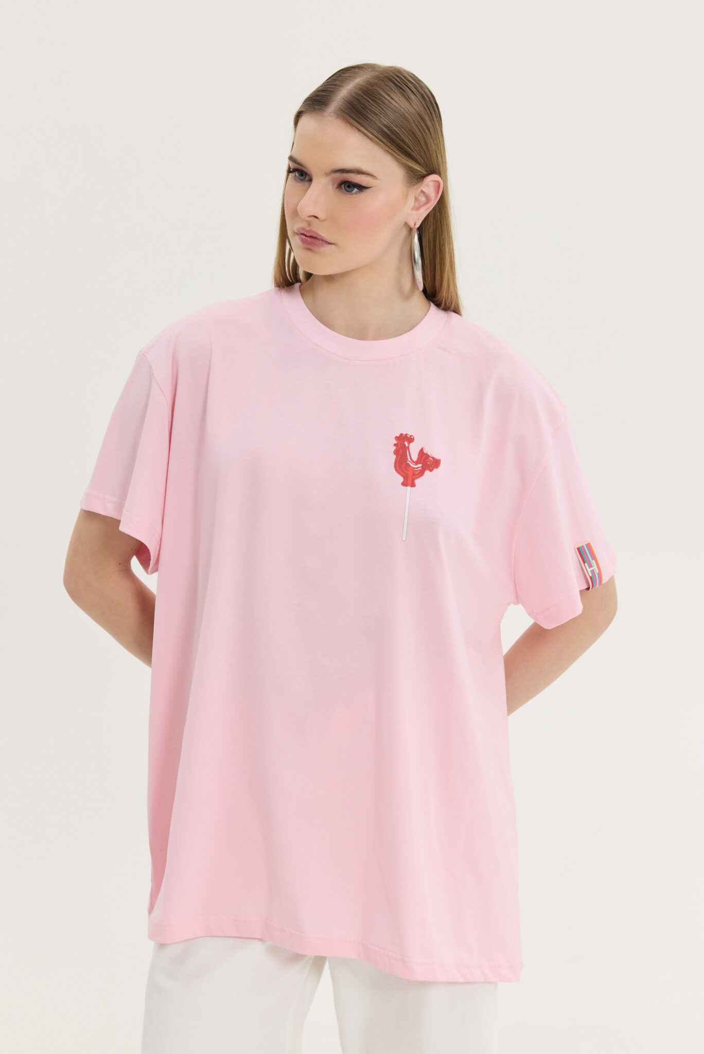 Hemithea-Heather t-shirt Pink (Lollipop). Oversized t-shirt με στάμπα γλυφιτζούρι στο πίσω μέρος. Boxy και long fit.