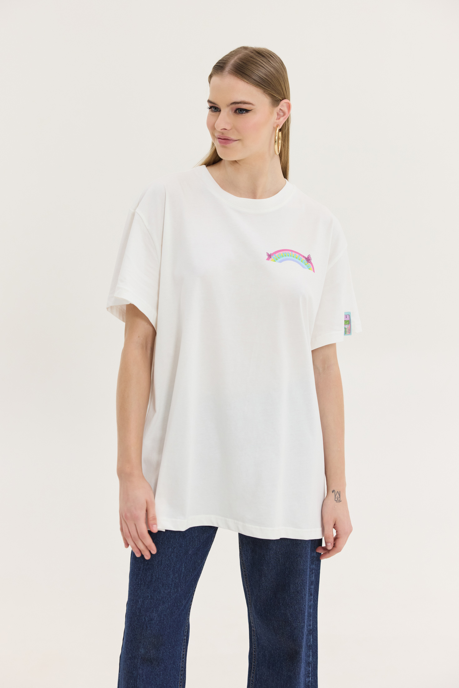 Hemithea-Cheetah t-Shirt (Pony). Oversized t-shirt με στάμπα κουτί με pony στο πίσω μέρος και στάμπα ουράνιο τόξο και logo στο μπροστινό μέρος. Boxy και long fit.