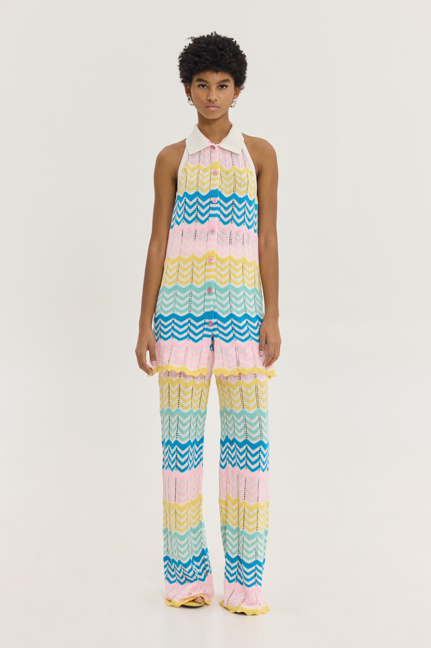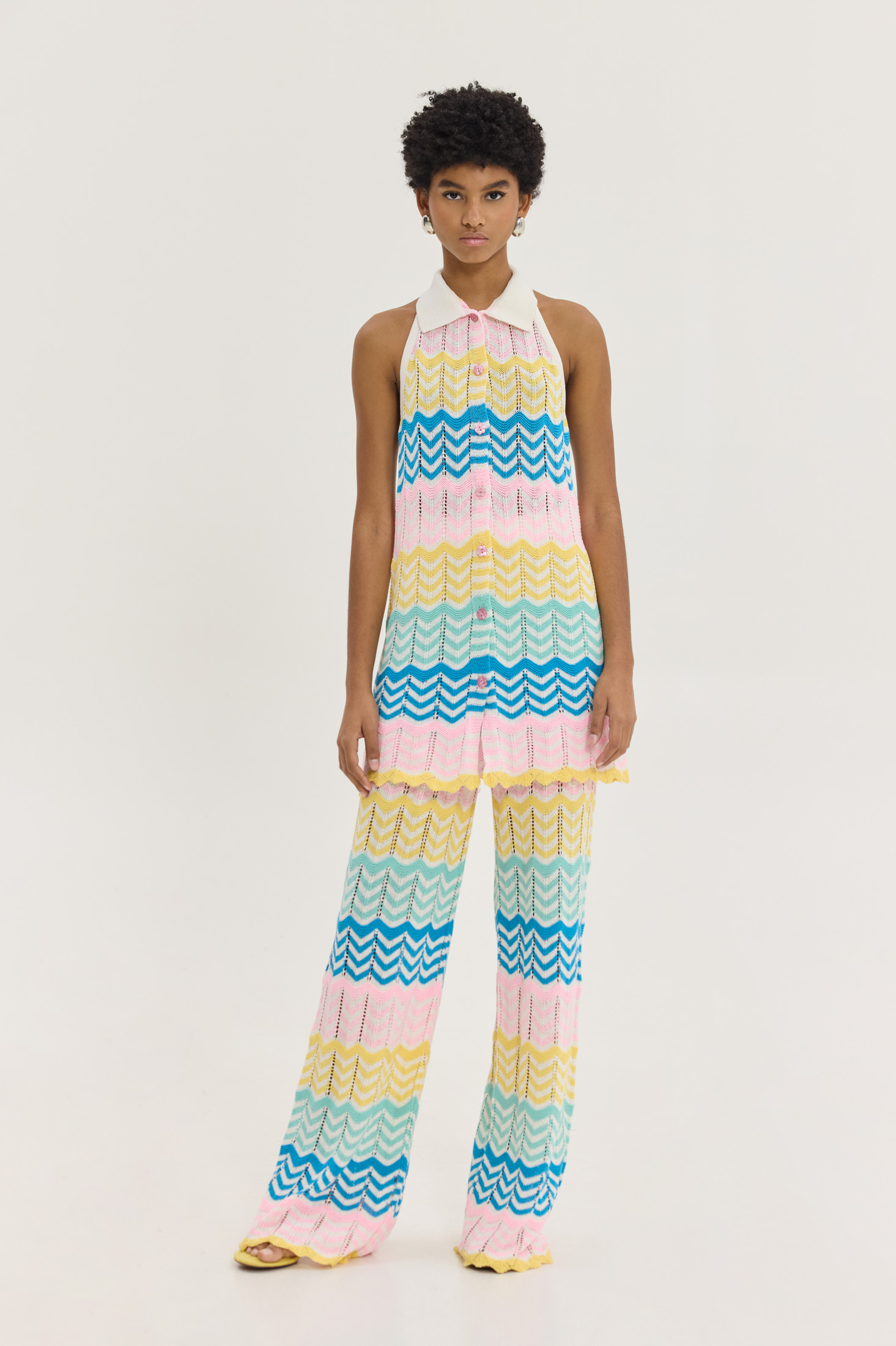 70’s vibes top πλεκτό με ανοιχτή πλάτη και pattern με ρίγες και κύματα. Συνδυάσε το με το Hemithea-Ios Pants (Stripes)