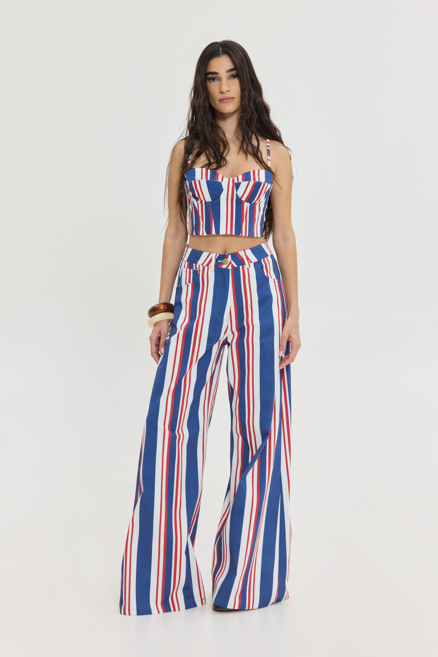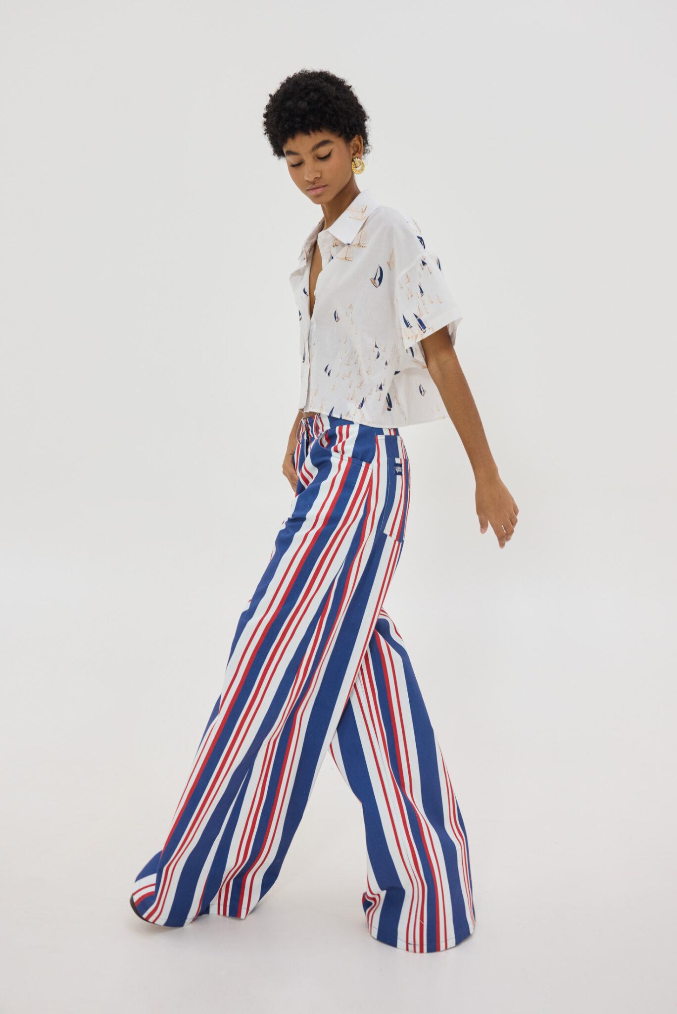 Extra wide leg ψηλόμεσο τζιν παντελόνι με pattern nautica stripes.
