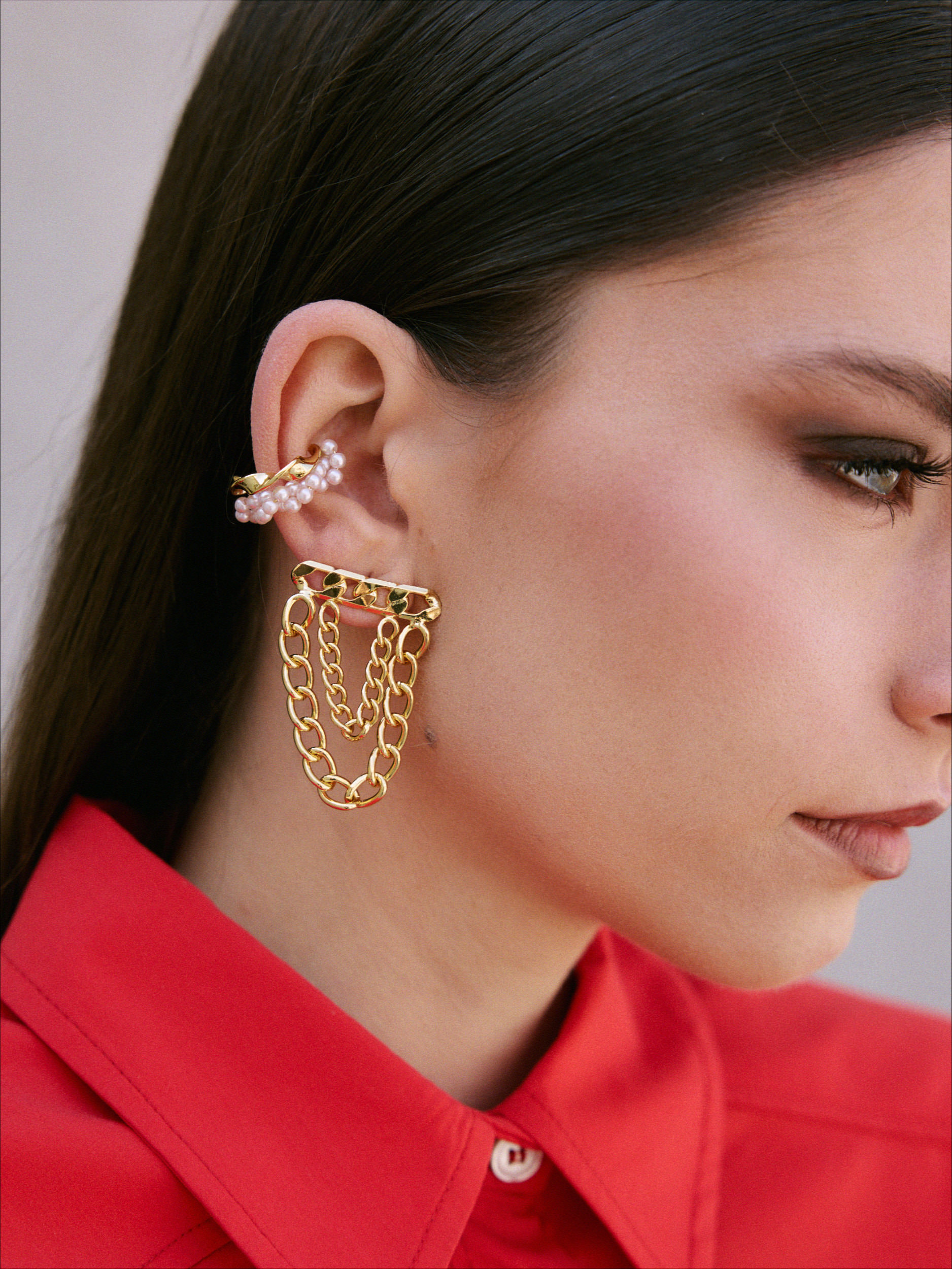 - Eπιχρυσωμένα μικρά μαργαριτάρια στo ear cuff