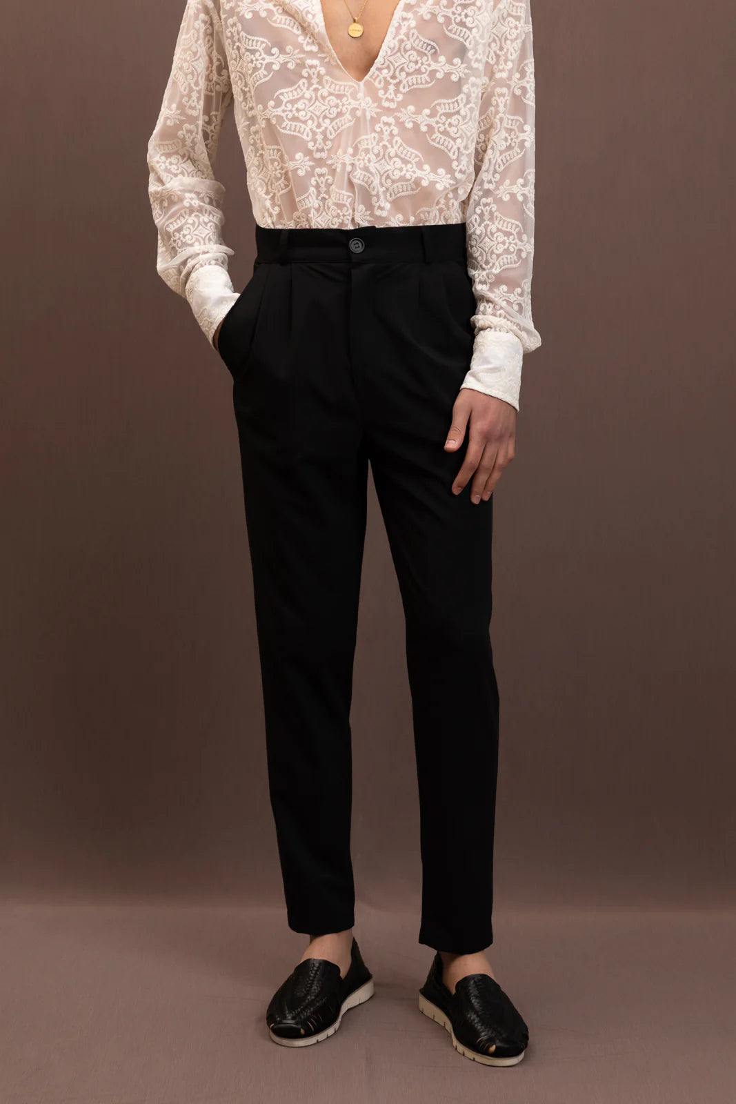 - – Μαύρο παντελόνι με μικρές πιέτες