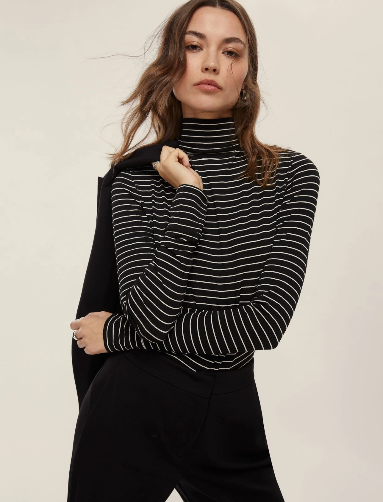 Βασικό στοιχείο της γκαρνταρόμπας της πόλης: αυτό το ελαστικό ζέρσεϊ με ντεκολτέ από βισκόζη θα γίνει ένα αξιόπιστο στολίδι. Είτε φορεμένο κάτω από ένα σακάκι είτε με άλλα πλεκτά, τζιν ή tailored παντελόνια, θα προσφέρει ευελιξία και ένα στυλ που δεν θα ξεπεραστεί ποτέ.