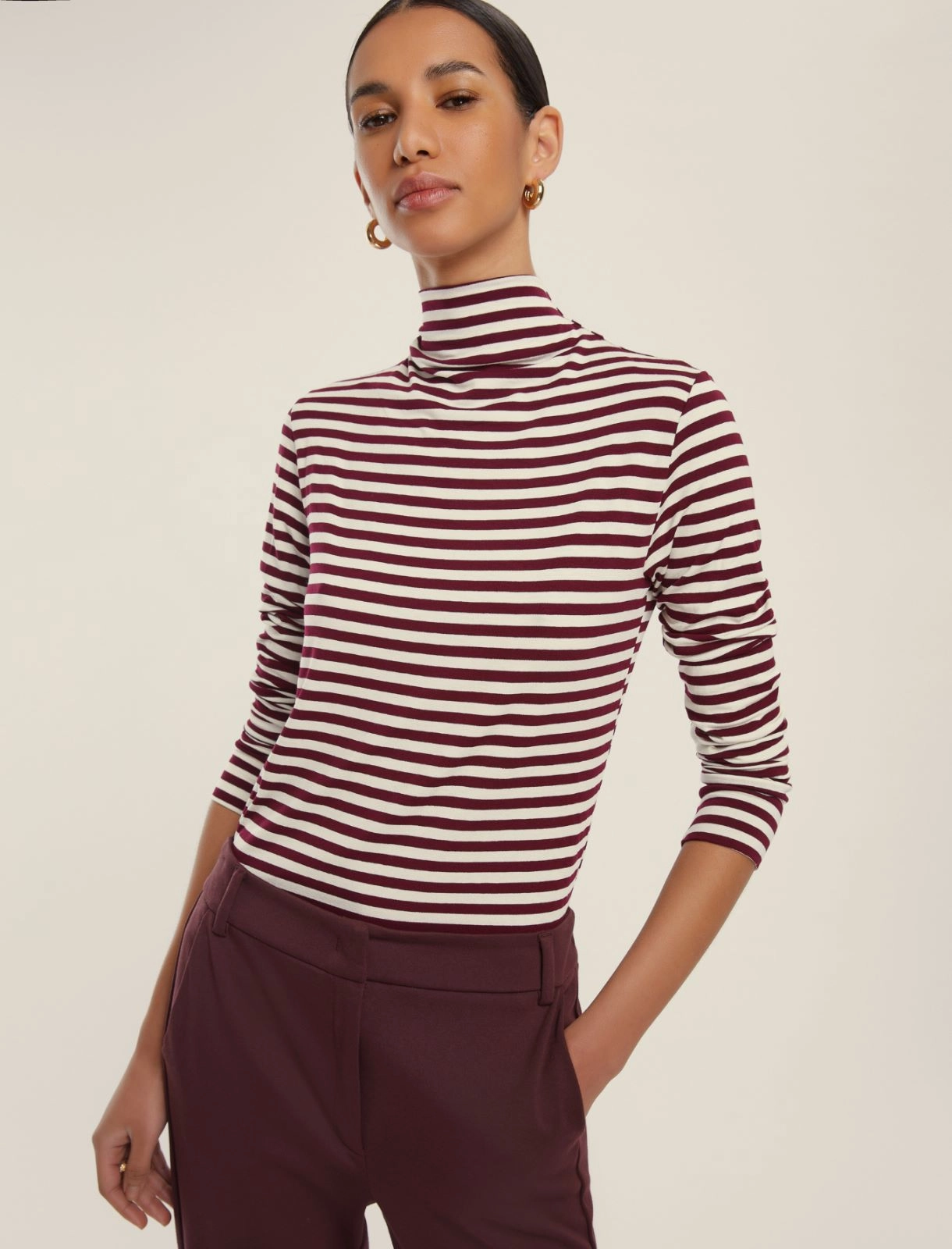 Βασικό στοιχείο της γκαρνταρόμπας της πόλης: αυτό το ελαστικό ζέρσεϊ με ντεκολτέ από βισκόζη θα γίνει ένα αξιόπιστο στολίδι. Είτε φορεμένο κάτω από ένα σακάκι είτε με άλλα πλεκτά, τζιν ή tailored παντελόνια, θα προσφέρει ευελιξία και ένα στυλ που δεν θα ξεπεραστεί ποτέ.