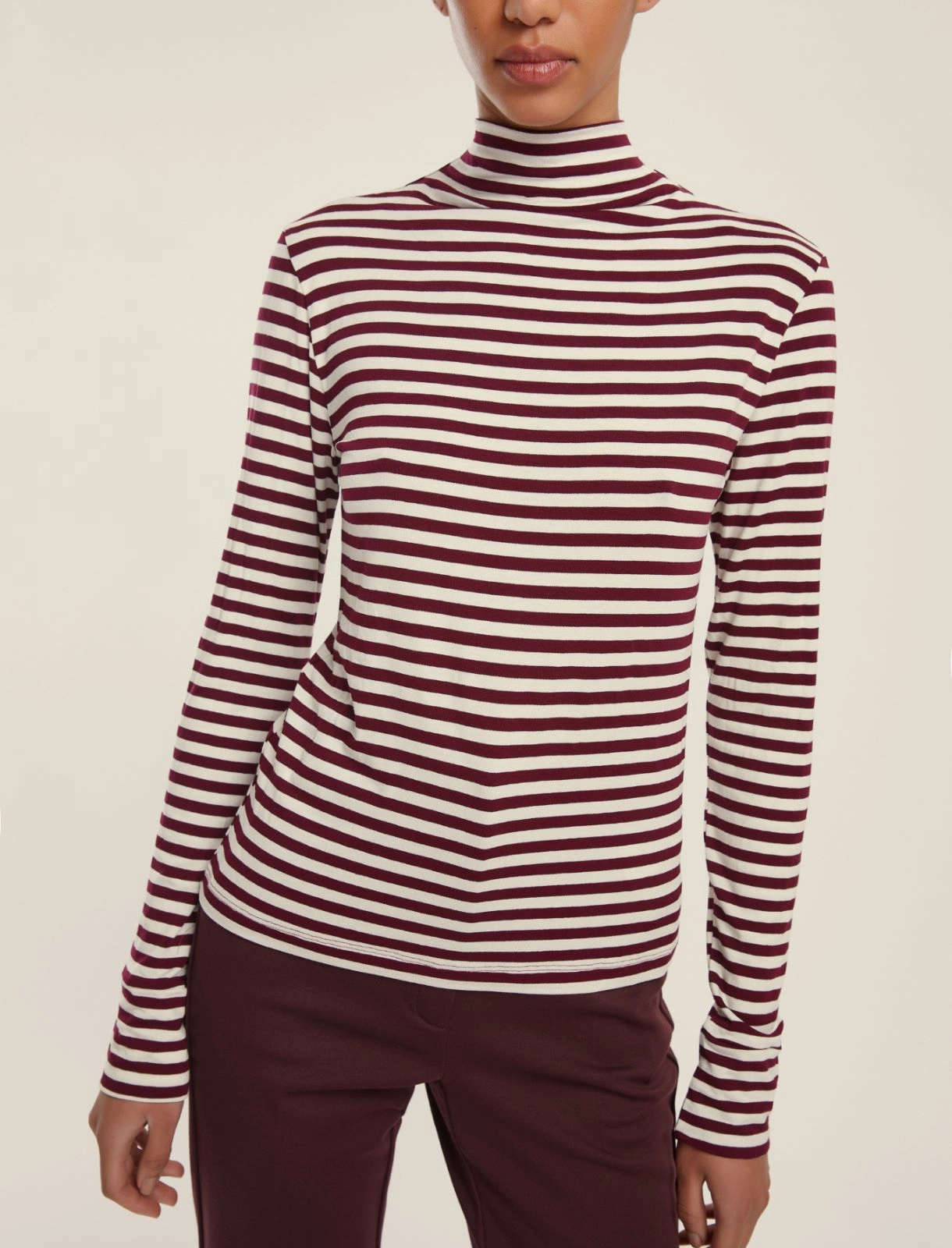 MAIA STRETCH JERSEY MOCK POLO-BORDEAUX