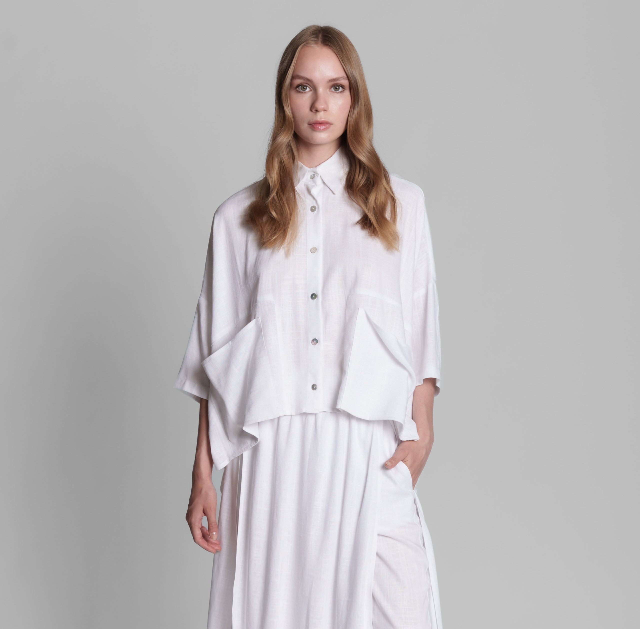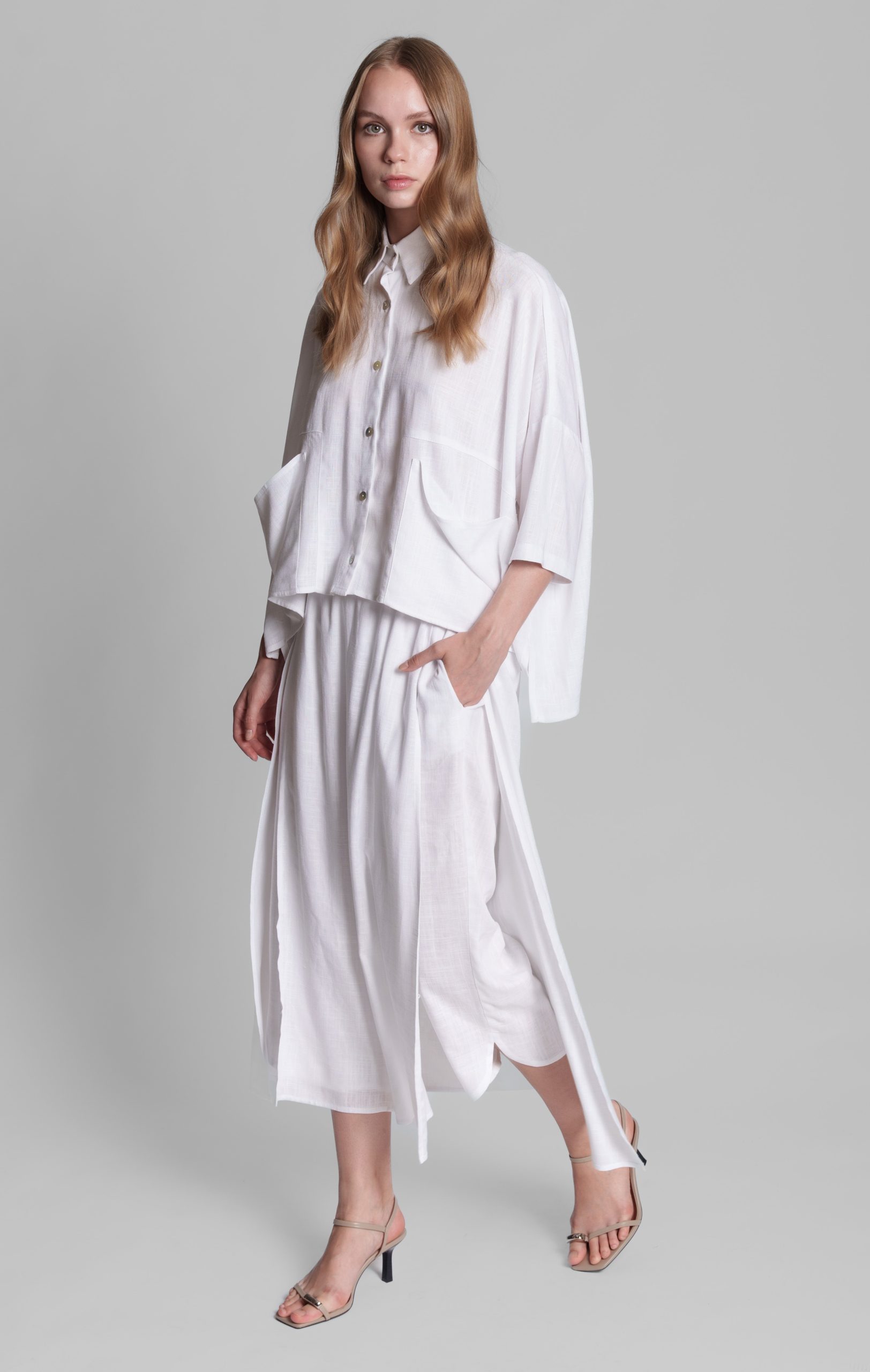 - Αέρινο λινό παντελόνι με ενσωματωμένη φούστα