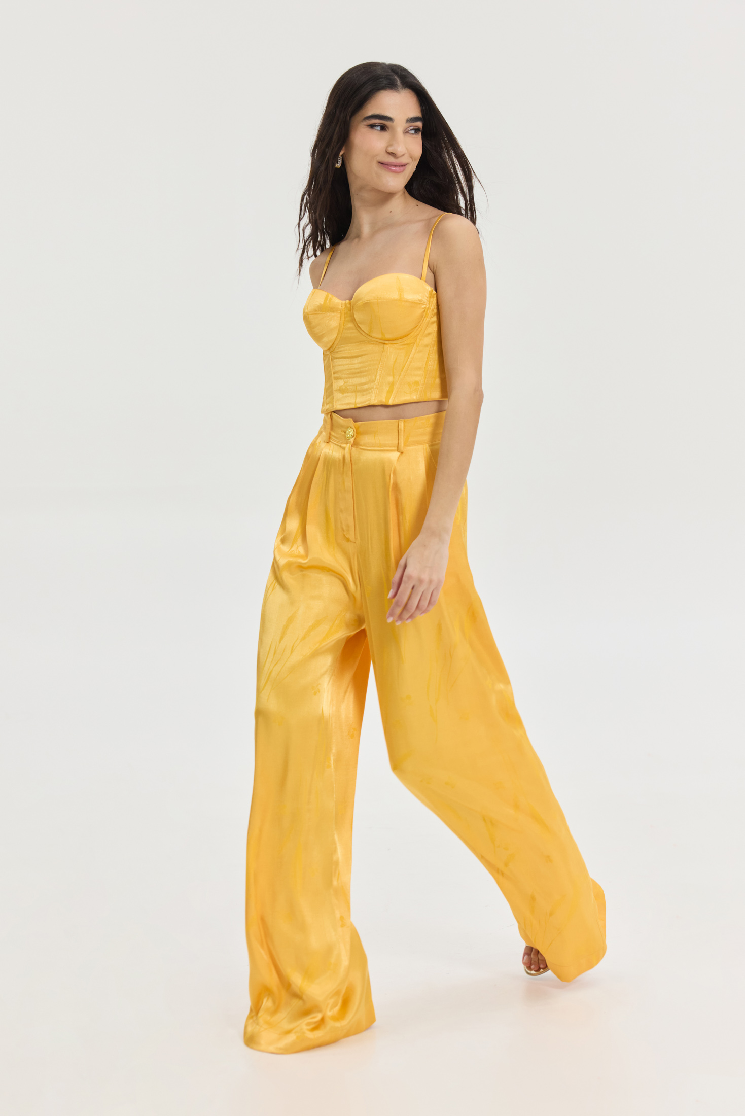 - Τι είναι η Jacquard σατέν βισκόζη και γιατί προσπαθήσαμε τόσο να πετύχουμε τον τέλειο συνδυασμό; Είναι το πιο μαλακό και δροσερό ύφασμα που θα φορέσεις κι εμείς τη φτιάξαμε με το δικό μας print σε tone to tone sunset orange. Πολλές προσπάθειες για το “τέλειο” χρώμα και την ισορροπία.