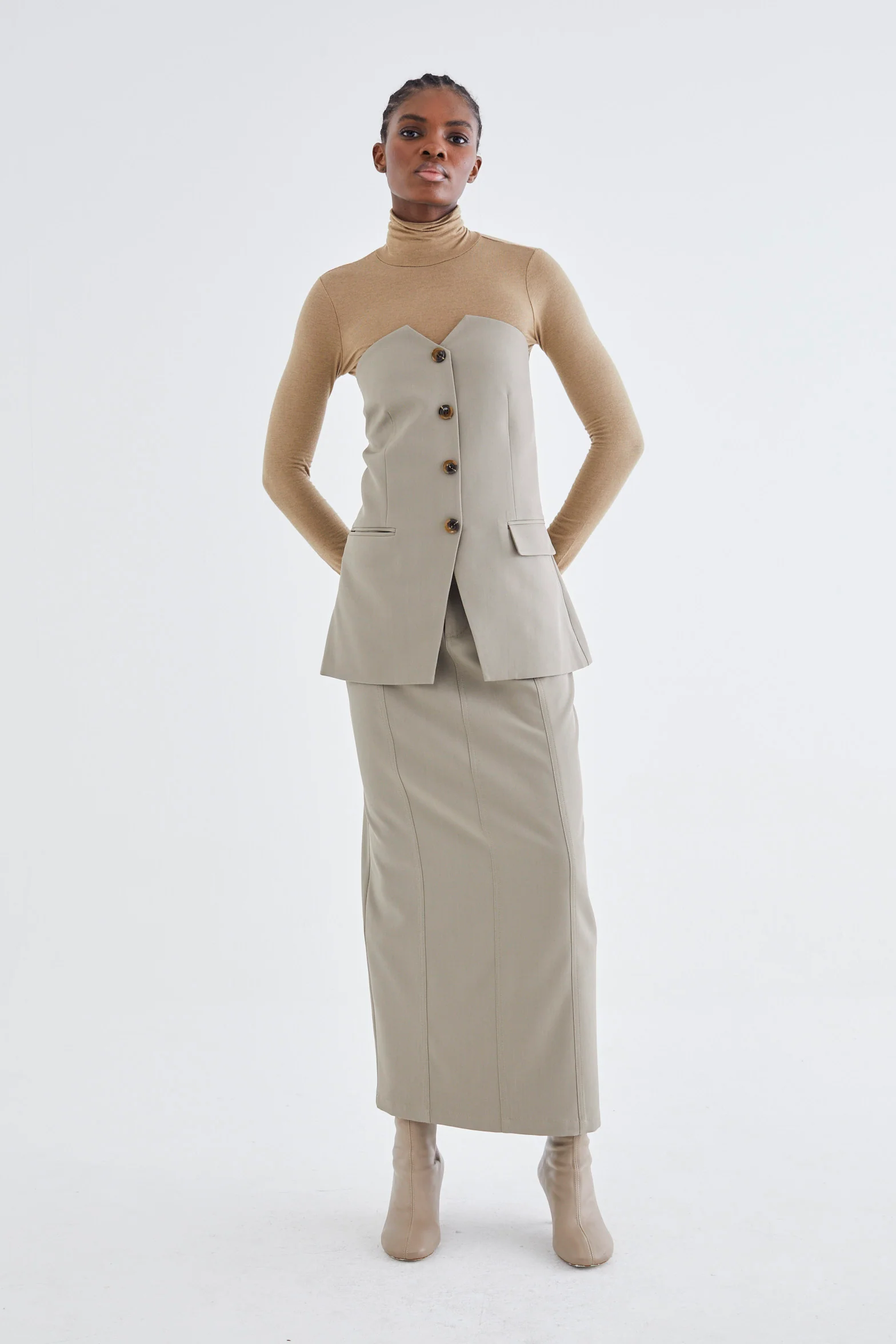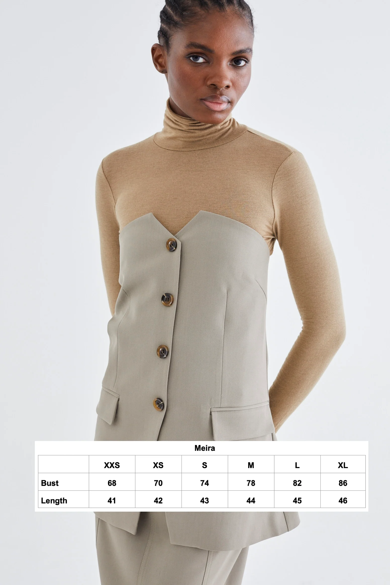 Αναβαθμίστε το στυλ σας με το Meira Strapless Bustier. Αυτό το κομψό, ραμμένο κομμάτι προσφέρει άψογη εφαρμογή που αναδεικνύει τη σιλουέτα σας χωρίς τιράντες, ιδανικό για εκλεπτυσμένες περιστάσεις. Οι καθαρές γραμμές και ο εκλεπτυσμένος σχεδιασμός του το καθιστούν μια διαχρονική προσθήκη σε κάθε γκαρνταρόμπα.