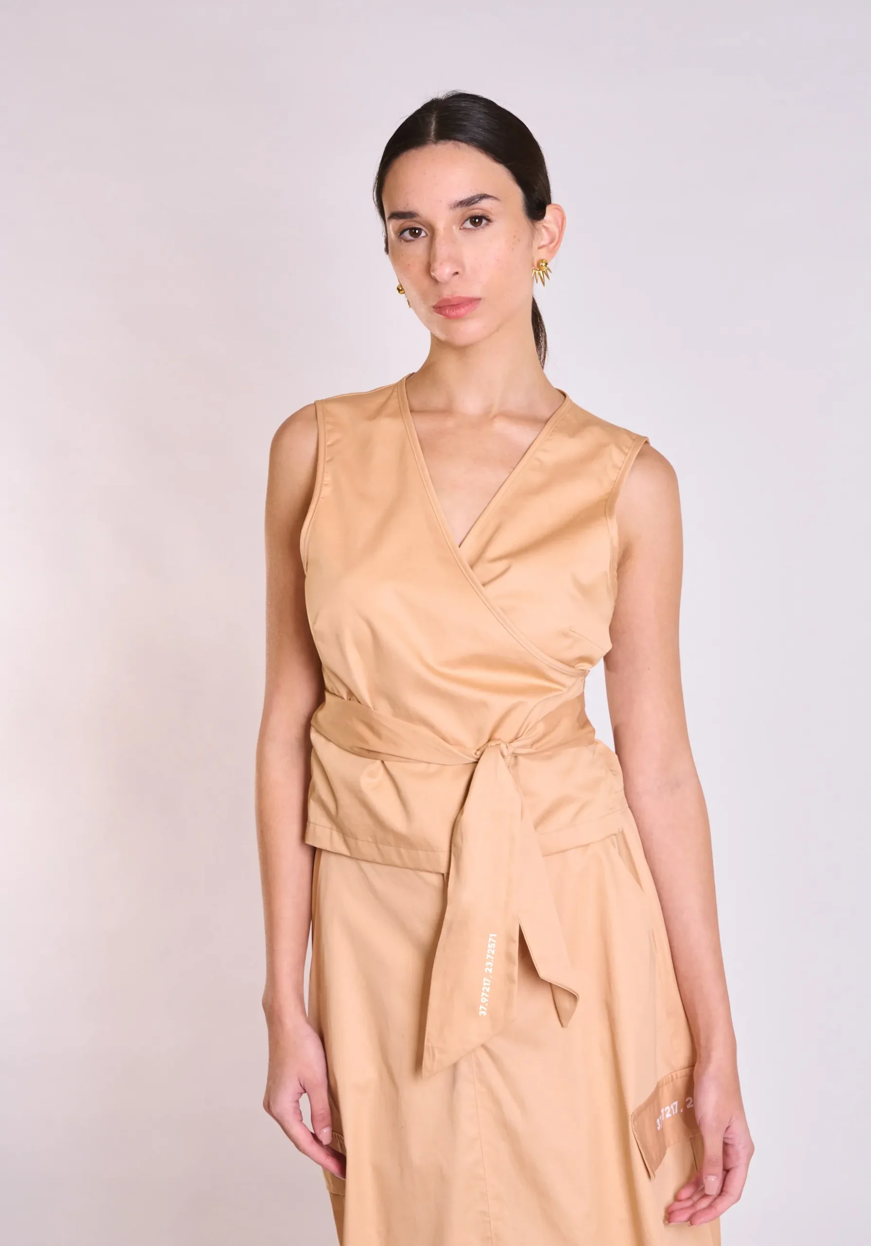 - Μπέζ top με θηλυκή V λαιμόκοψη
