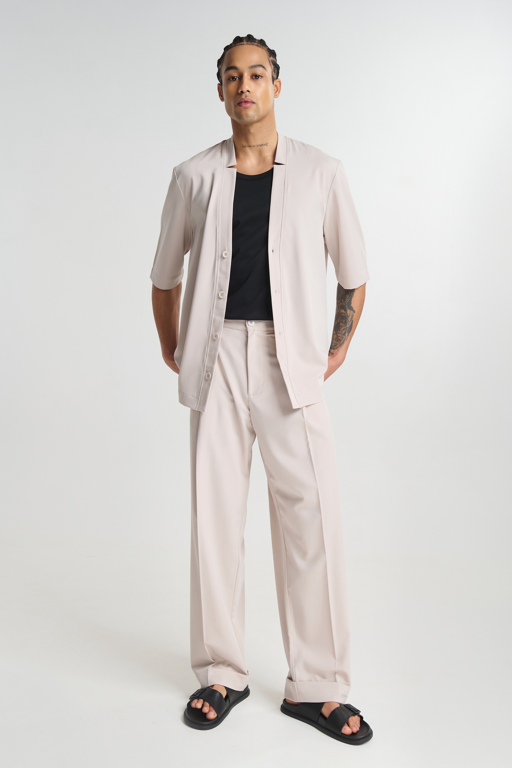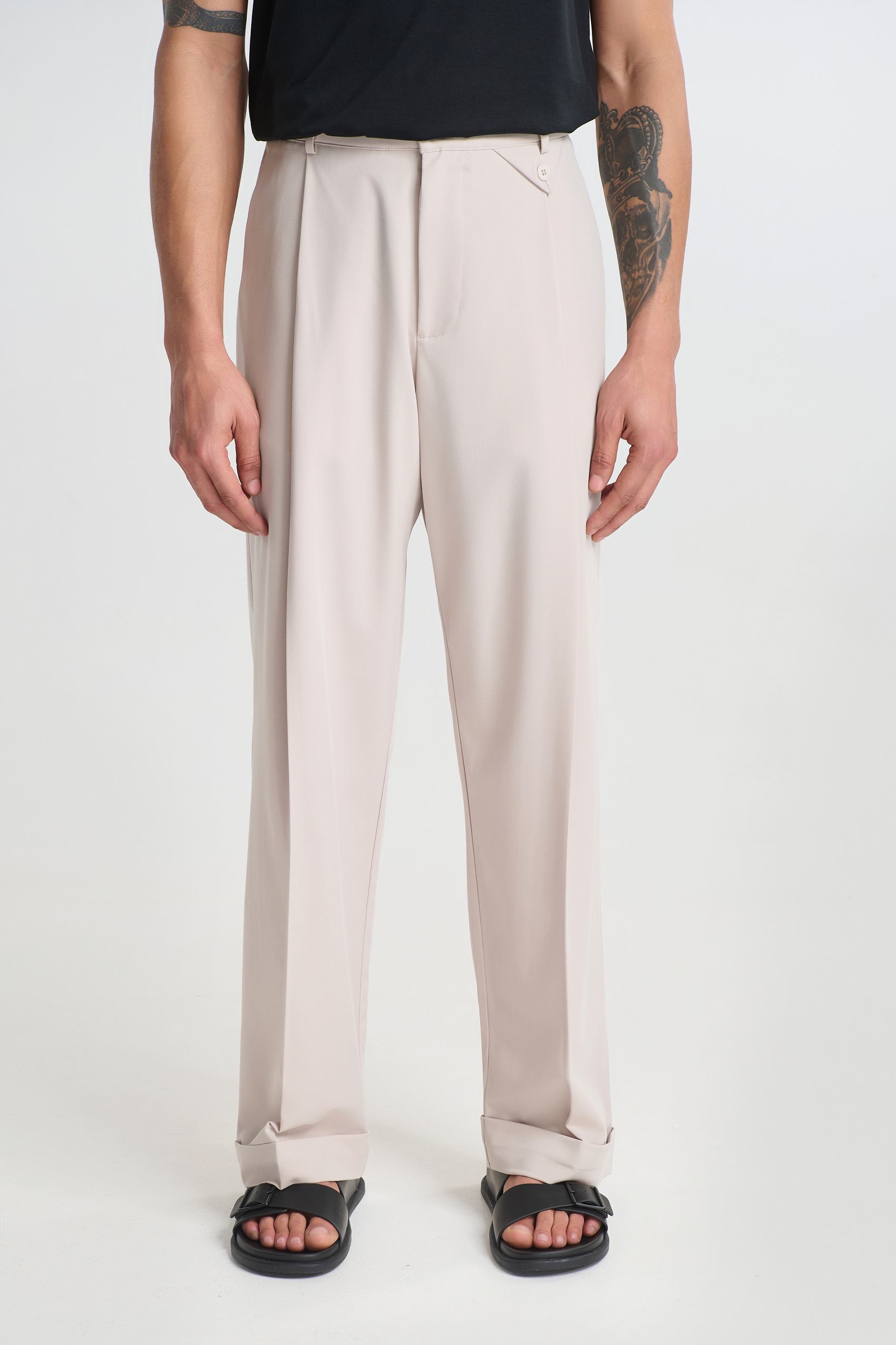 Ανδρικό υφασμάτινο παντελόνι με wide leg γραμμή. Συνδυασέτο με το P/COC Κοντομάνικο Πουκάμισο με Πιέτα για ένα total look.