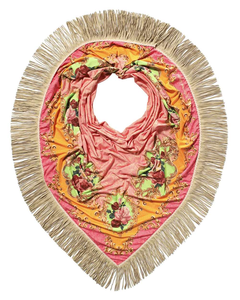 – Ροζ εσάρπα με ψηφιακό τύπωμα