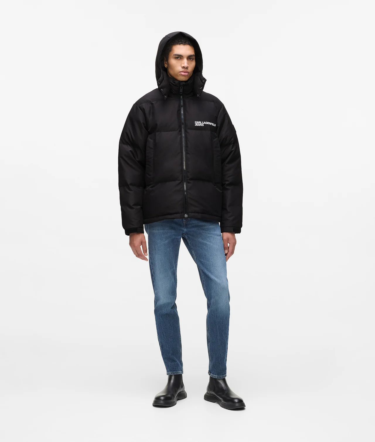 Υιοθετήστε μια αισθητική street style με αυτό το φουσκωτό μπουφάν, που διαθέτει κλείσιμο με φερμουάρ μπροστά που οδηγεί σε ψηλό λαιμό και αποσπώμενη κουκούλα για ευέλικτο στυλ. Οι πρακτικές πλαϊνές τσέπες με φερμουάρ προσθέτουν λειτουργικότητα, ενώ το έντονο λογότυπο KARL LAGERFELD JEANS κάνει μια εντυπωσιακή δήλωση.