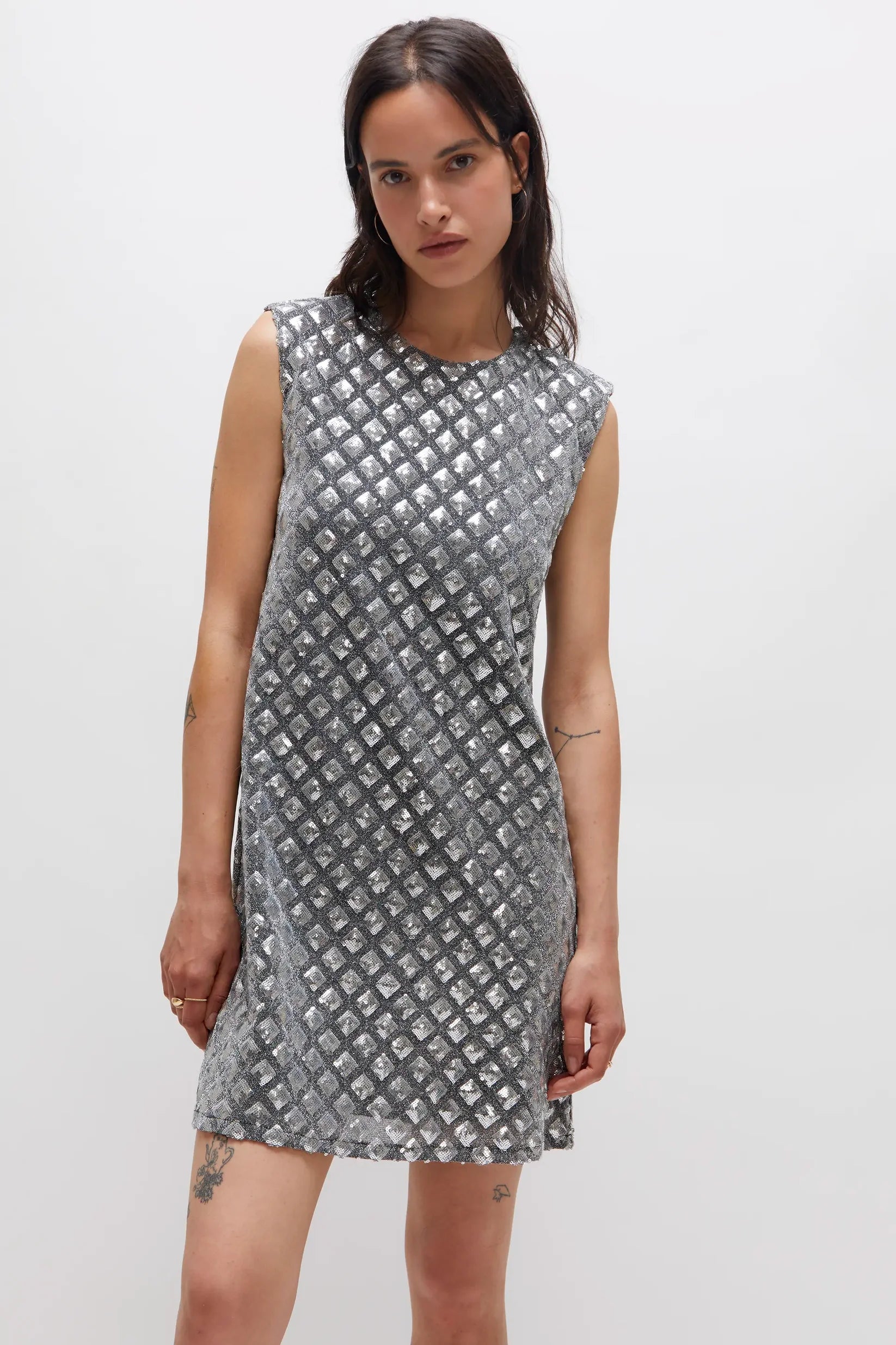 SHORT SILVER SEQUIN DRESS