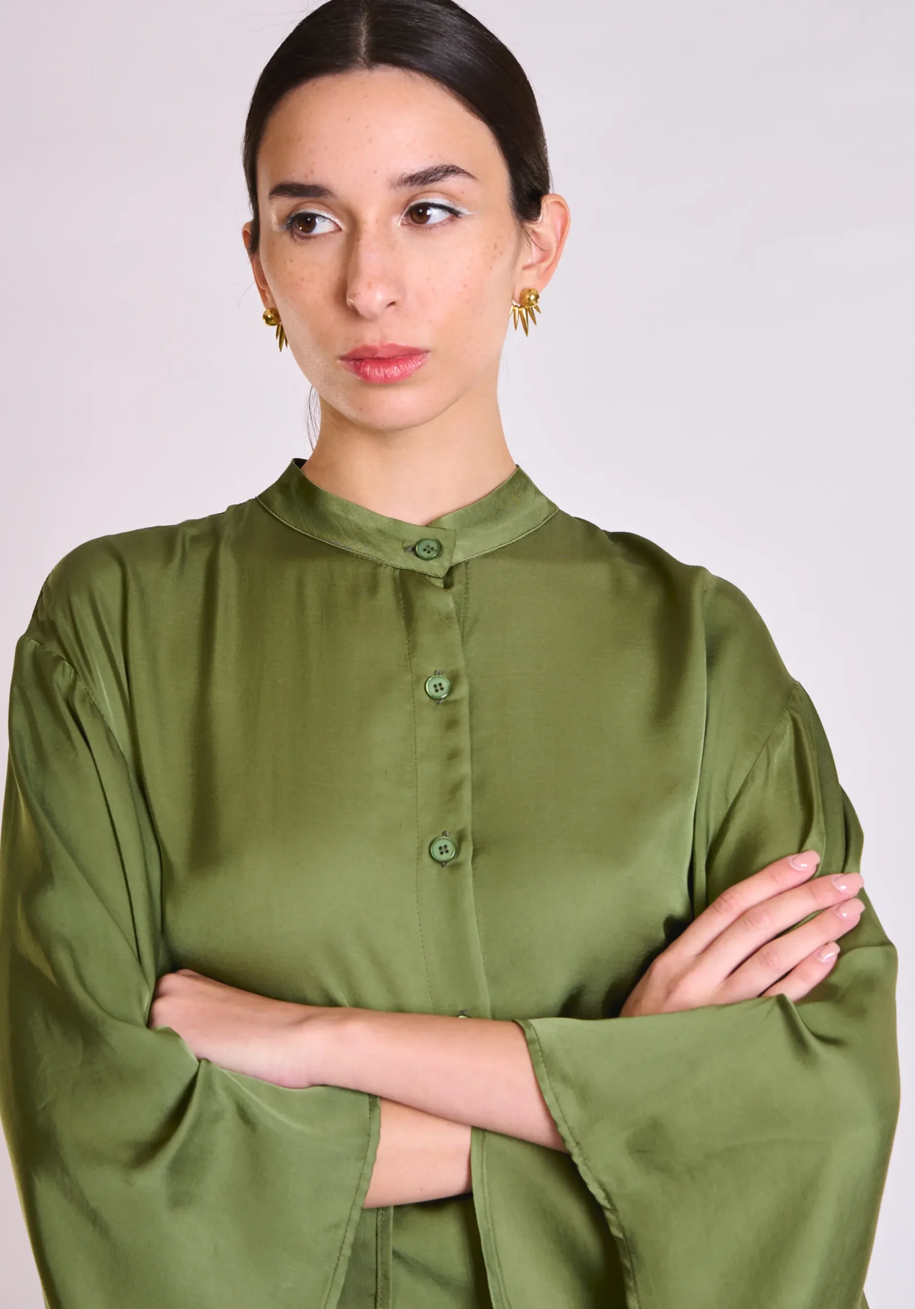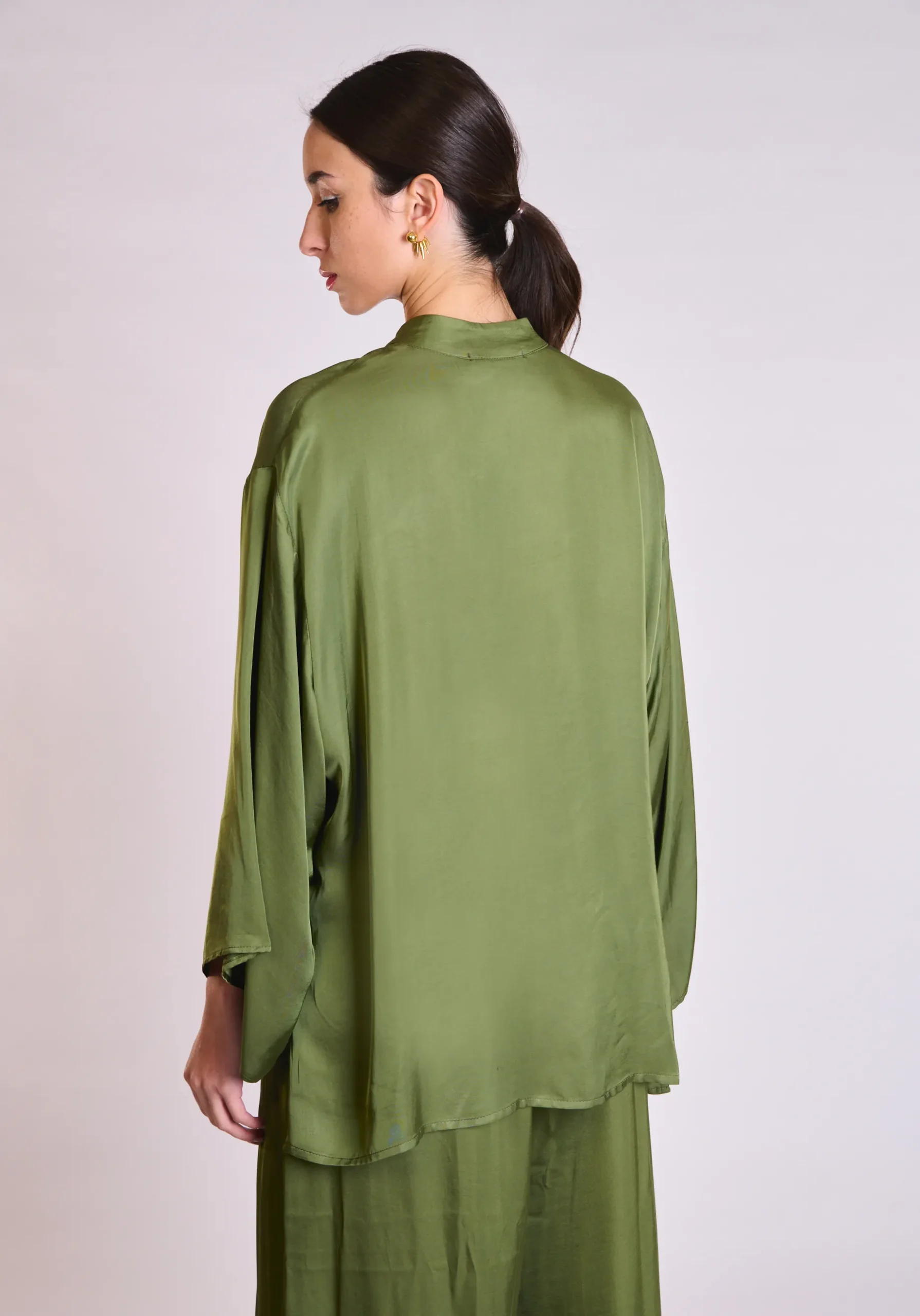 Minimal πουκάμισο με ρευστή γραμμή και σύγχρονη αισθητική. Κομψή και ευέλικτη επιλογή για effortless και θηλυκά καθημερινά looks.