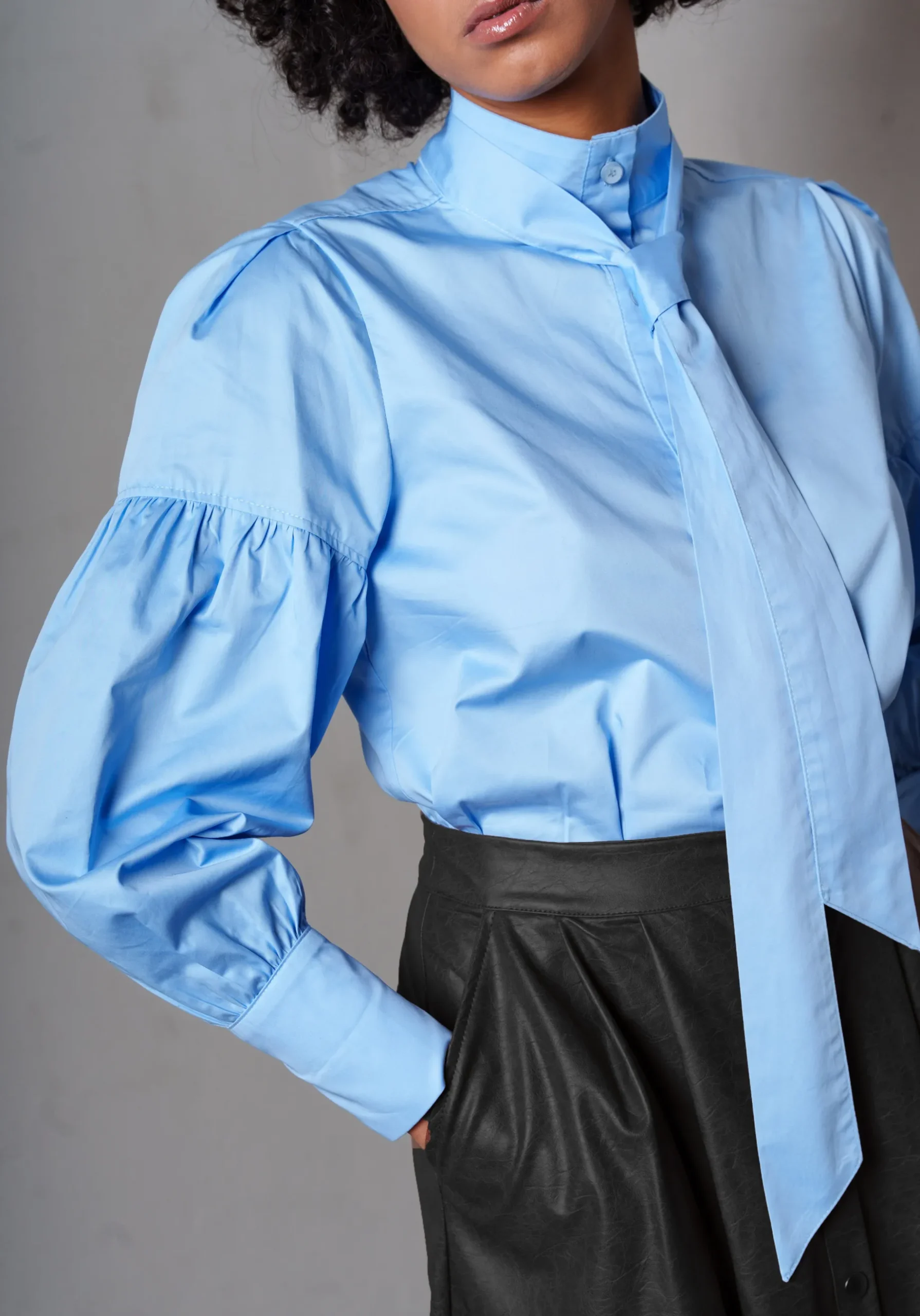- Ενσωματωμένο φουλάρι-γραβάτα από το ίδιο ύφασμα που δένει στο λαιμό