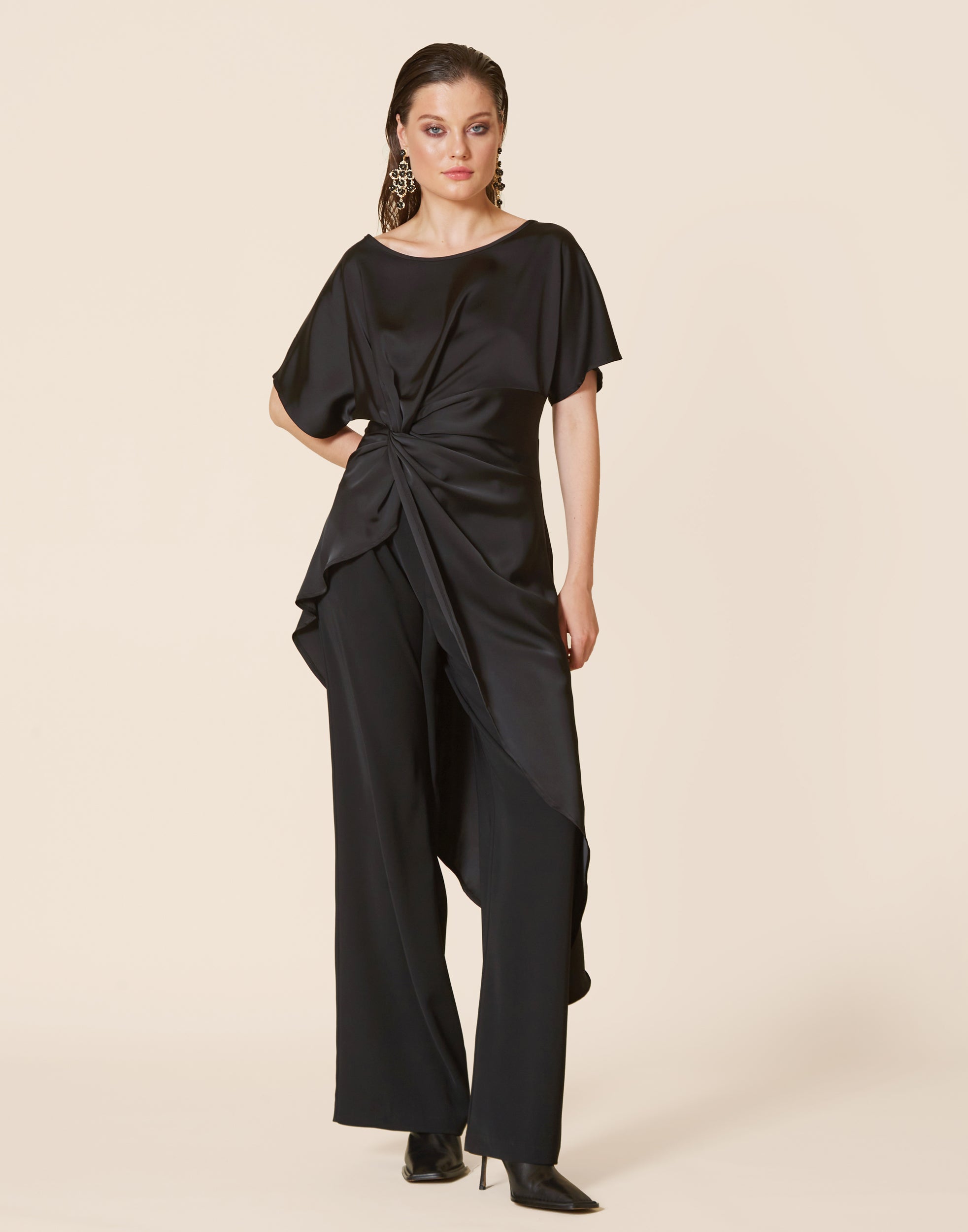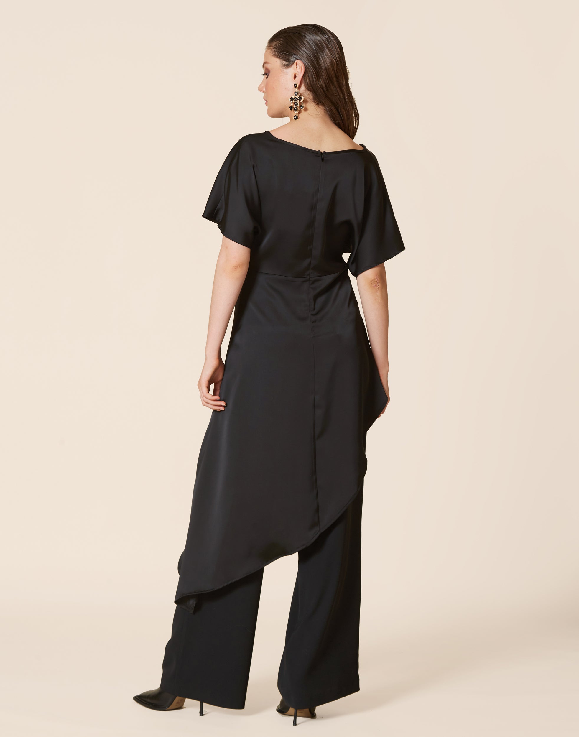 THE LONG LINE SATIN TOP | BLACK